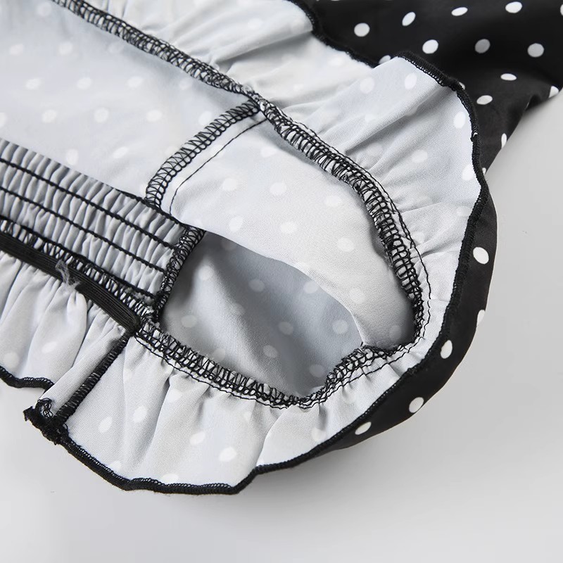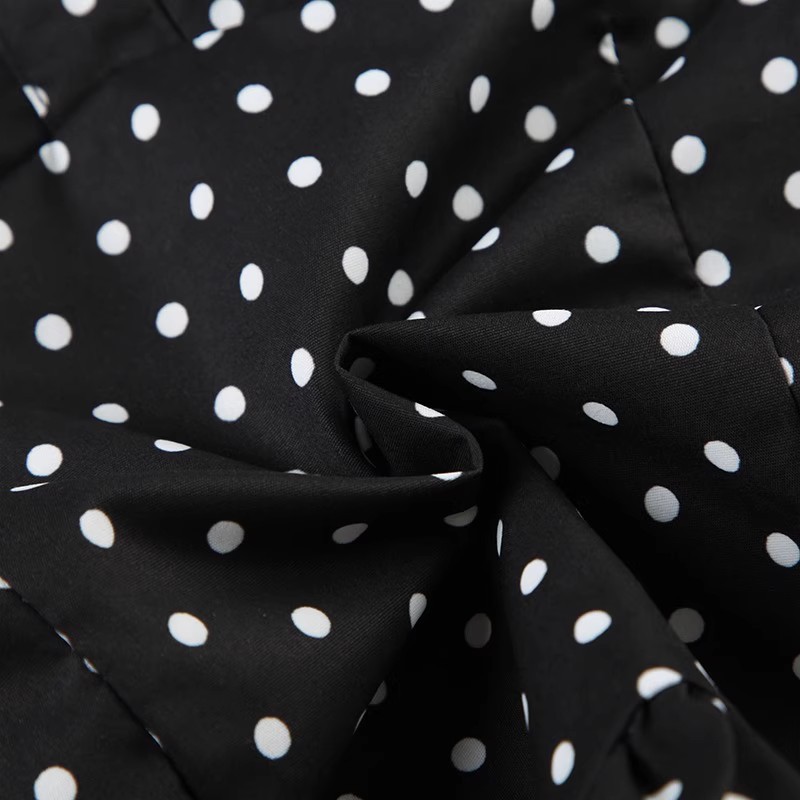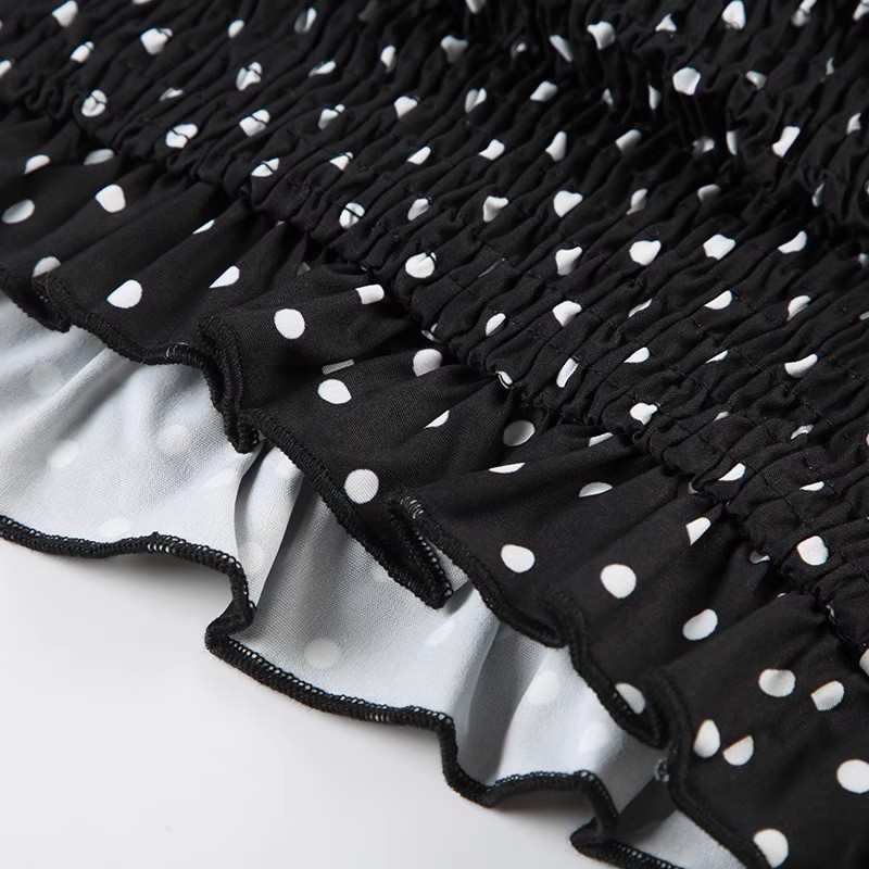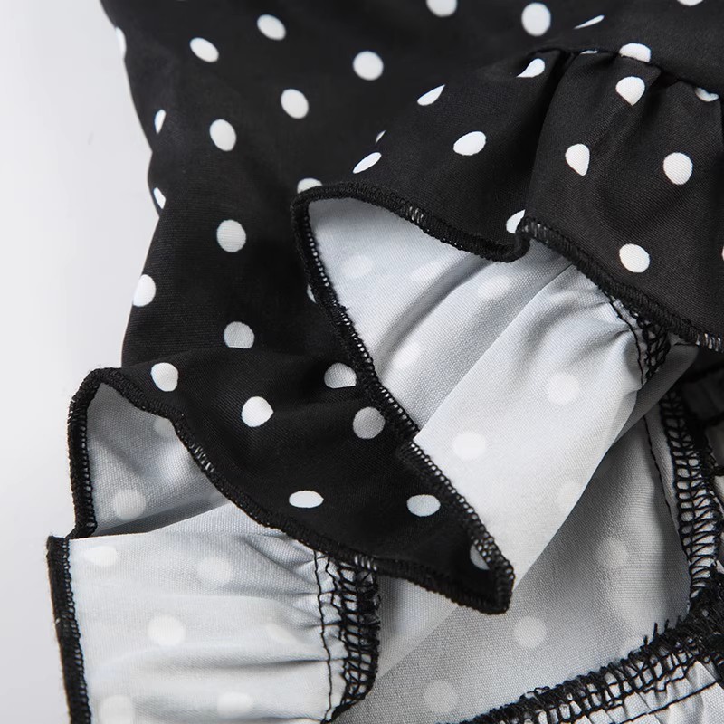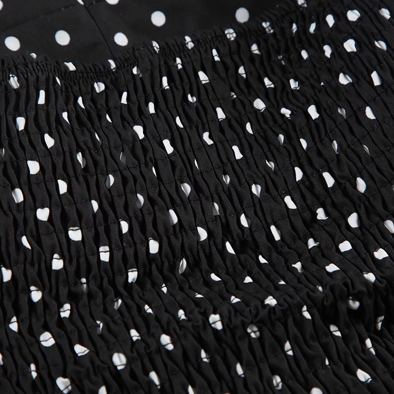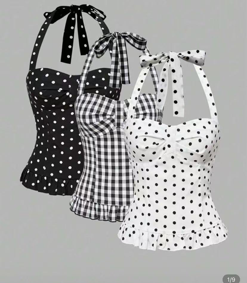 欧美外贸女法式波点印花胸型褶皱挂脖绑带背心纯欲公主风收腰上衣