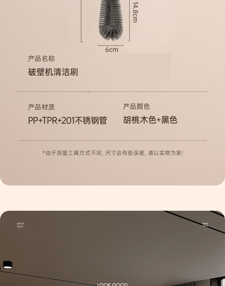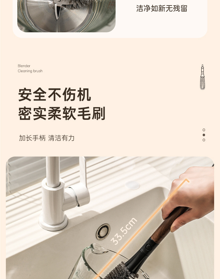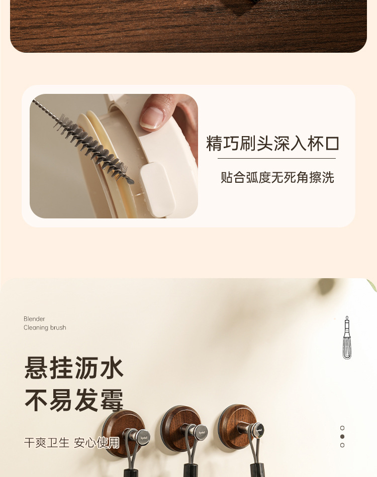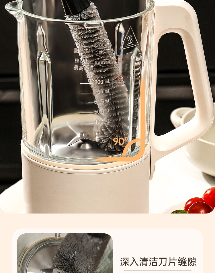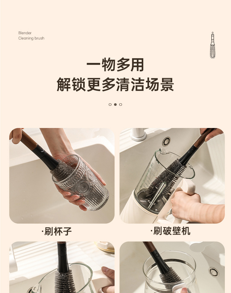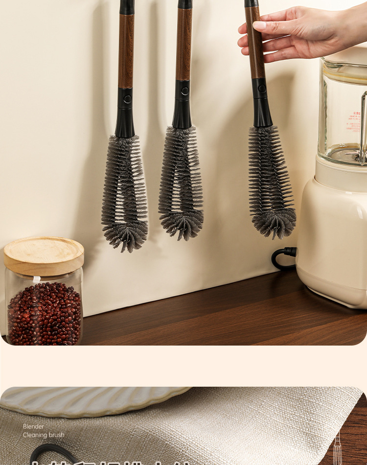 胡桃色二合一瓶口刷长柄可拆卸缝隙刷多功能软毛杯刷破壁机清洗刷