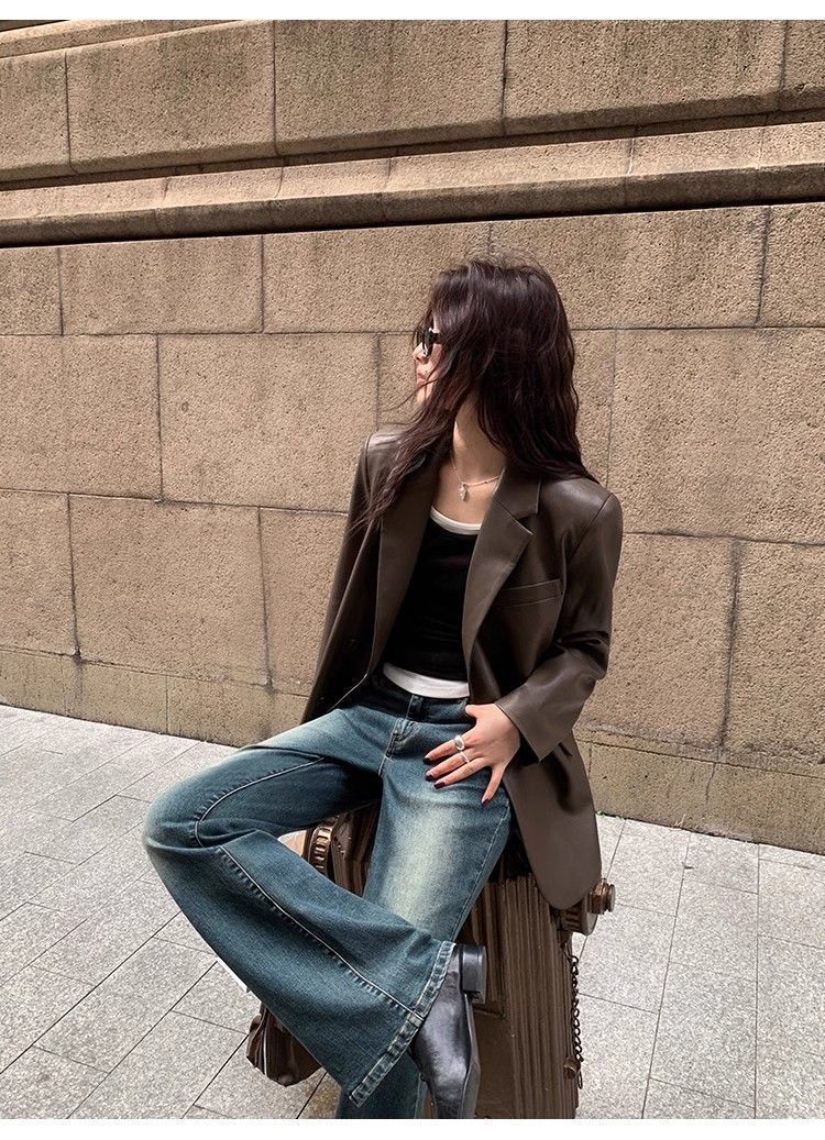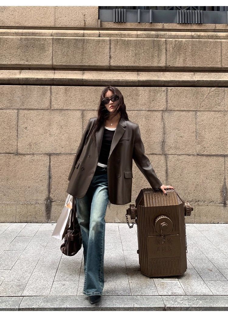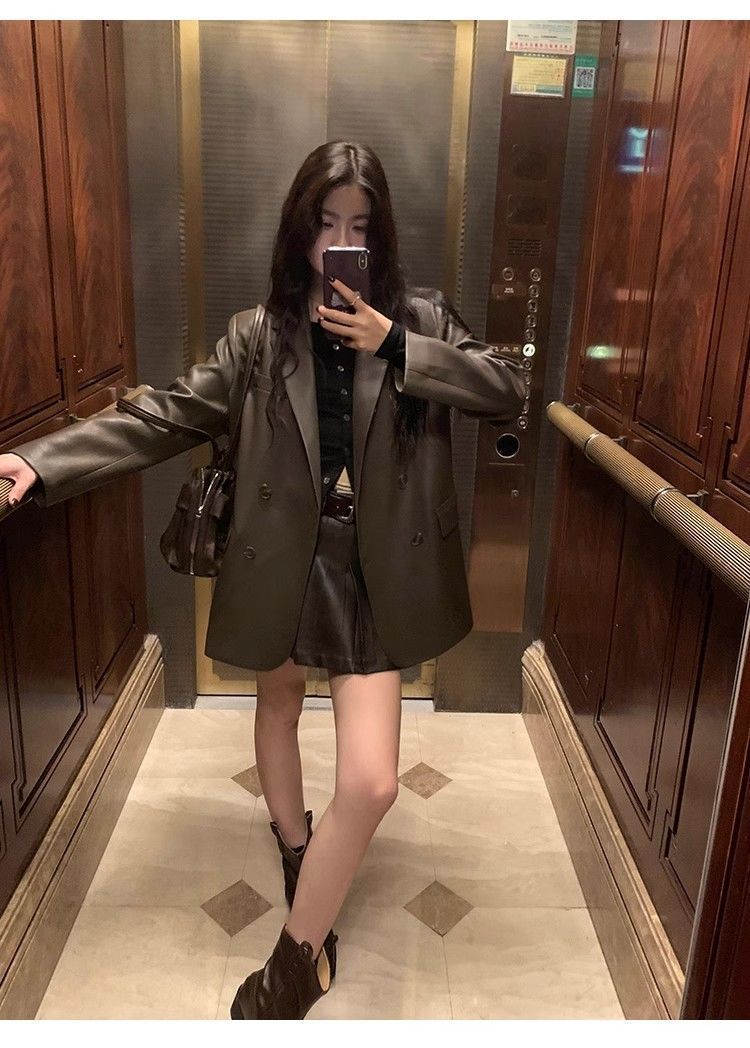 高级感西装皮衣外套女2025秋季新款宽松高档百搭气质皮上衣洋气