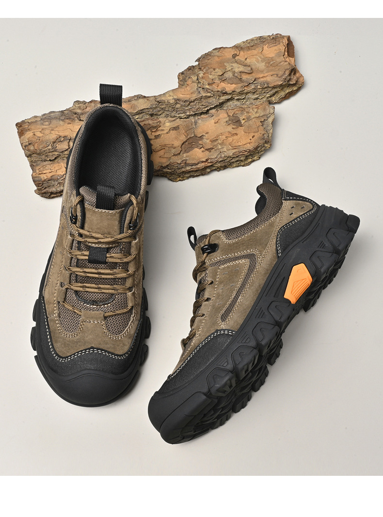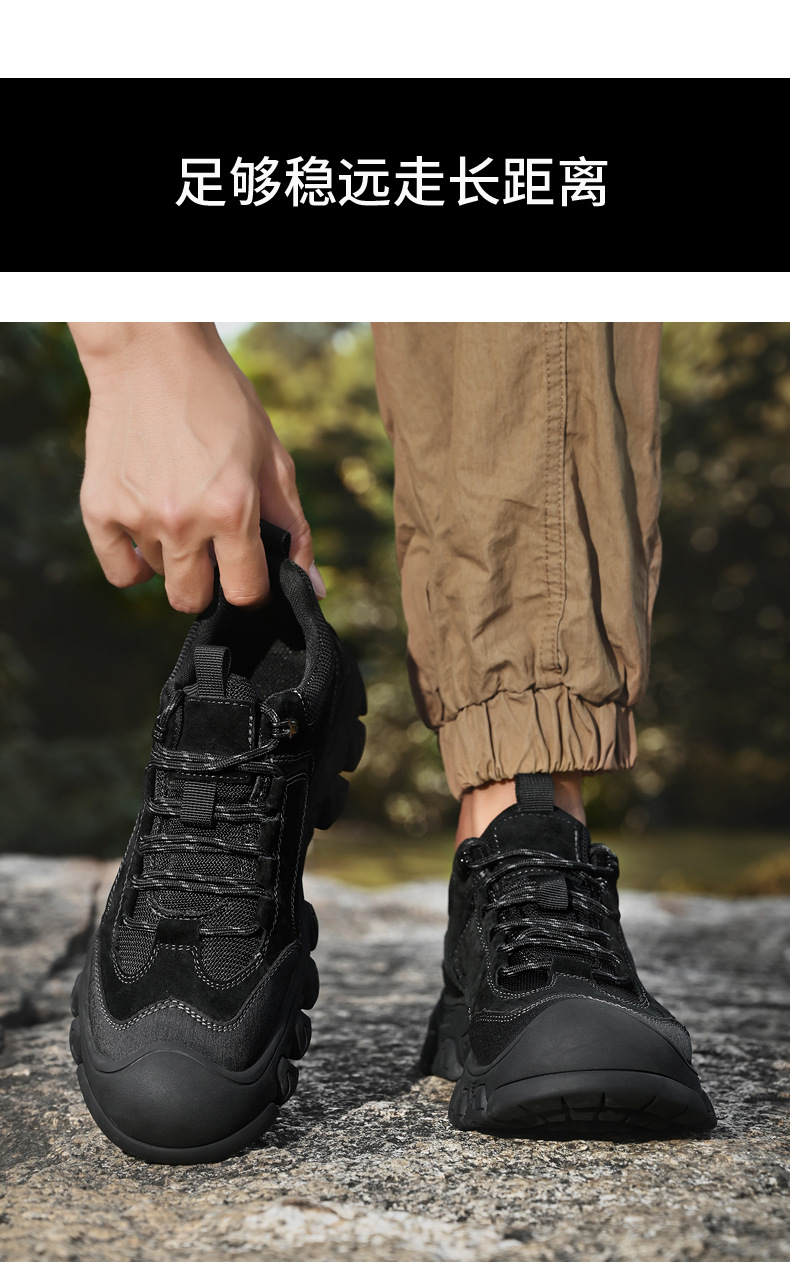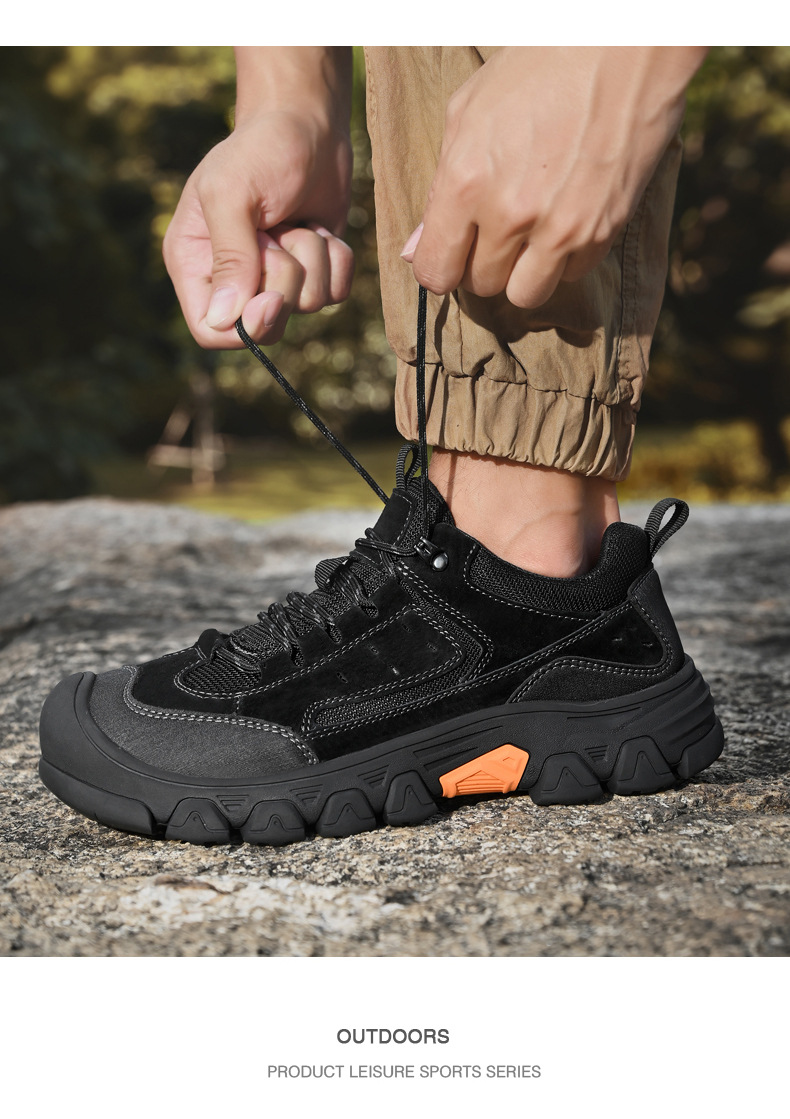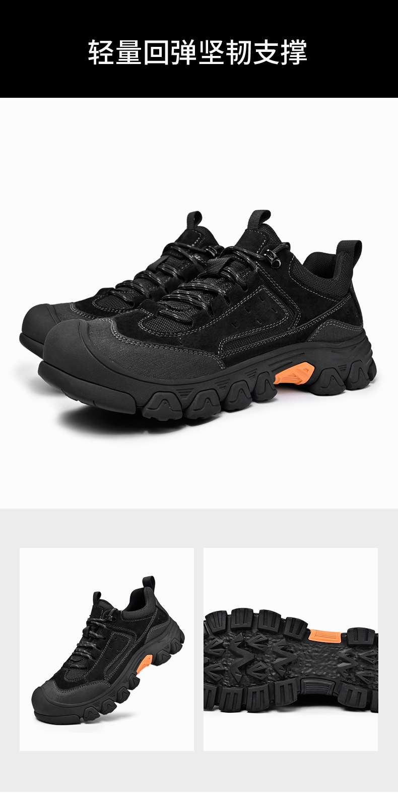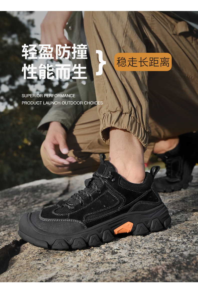 登山男鞋直播新款秋季软底防滑包头工装鞋低帮系带厚底户外休闲鞋
