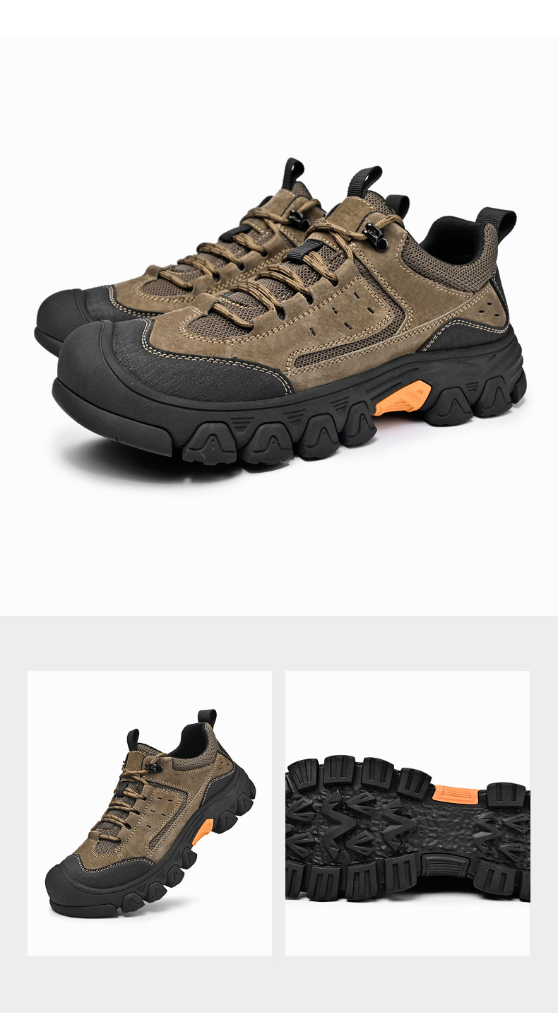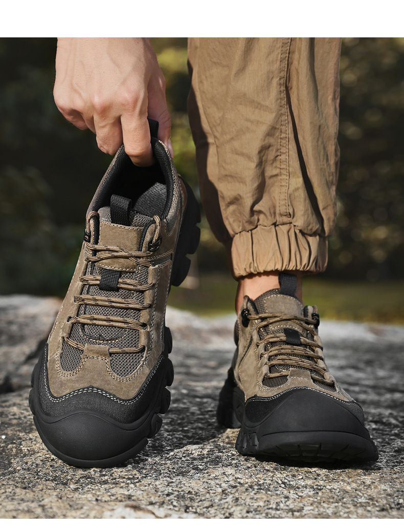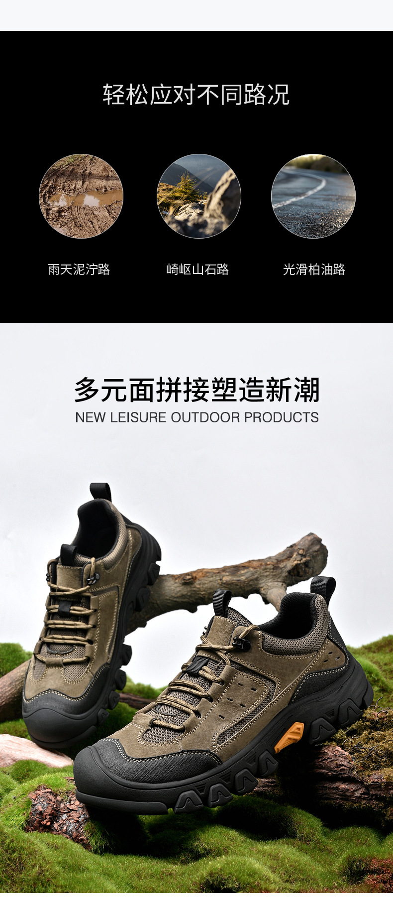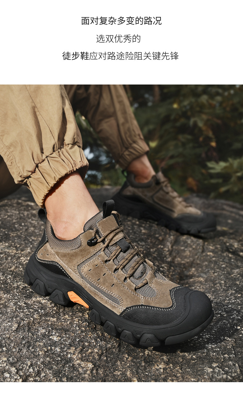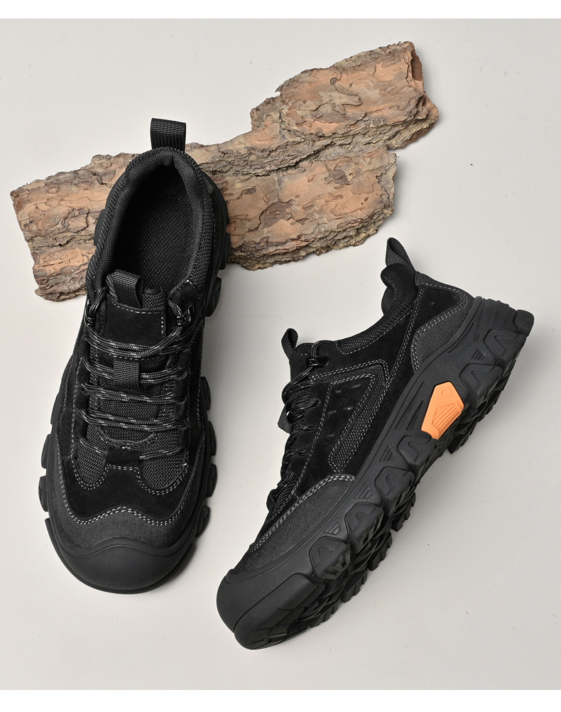 登山男鞋直播新款秋季软底防滑包头工装鞋低帮系带厚底户外休闲鞋
