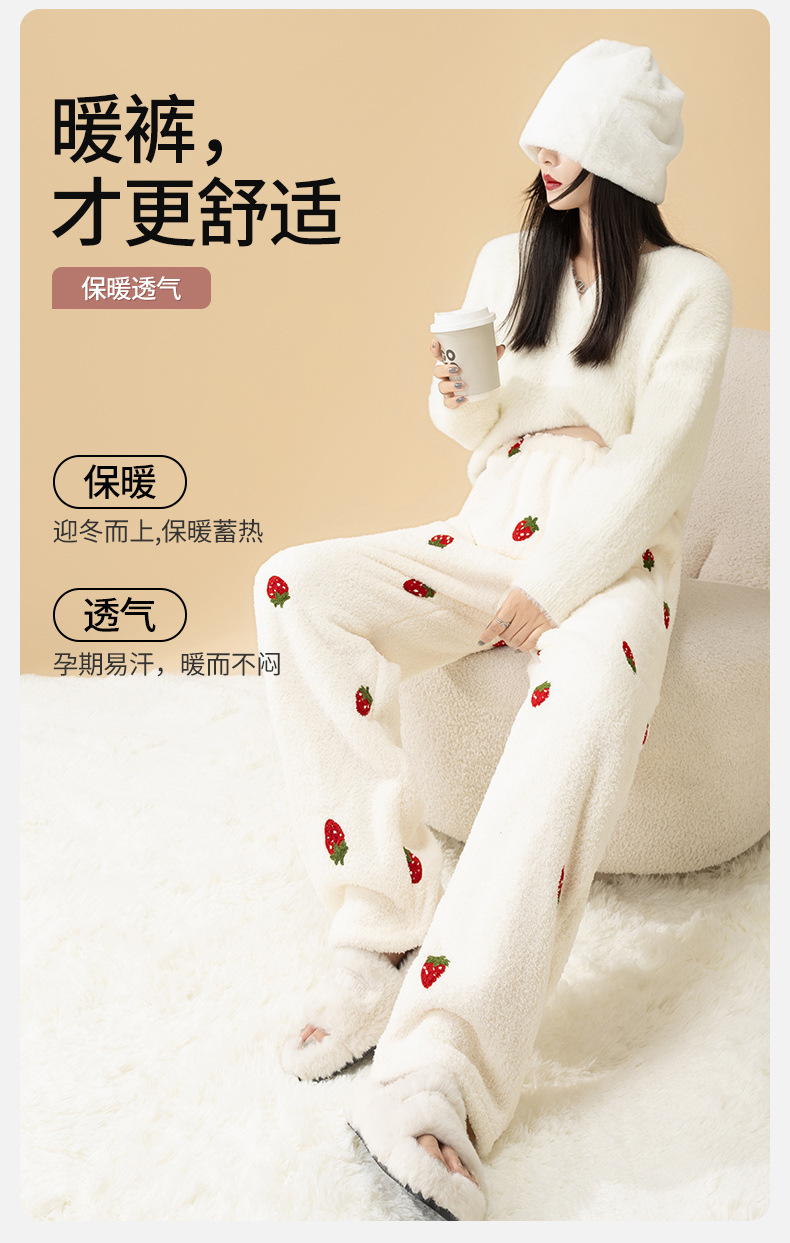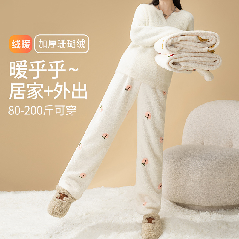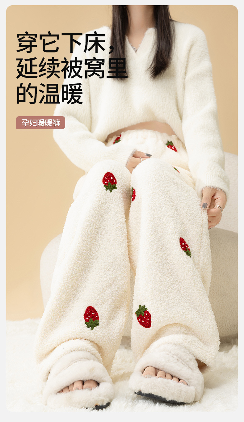 大码孕妇暖暖裤珊瑚绒秋冬加绒加厚睡裤保暖不勒肚束脚舒适家居裤
