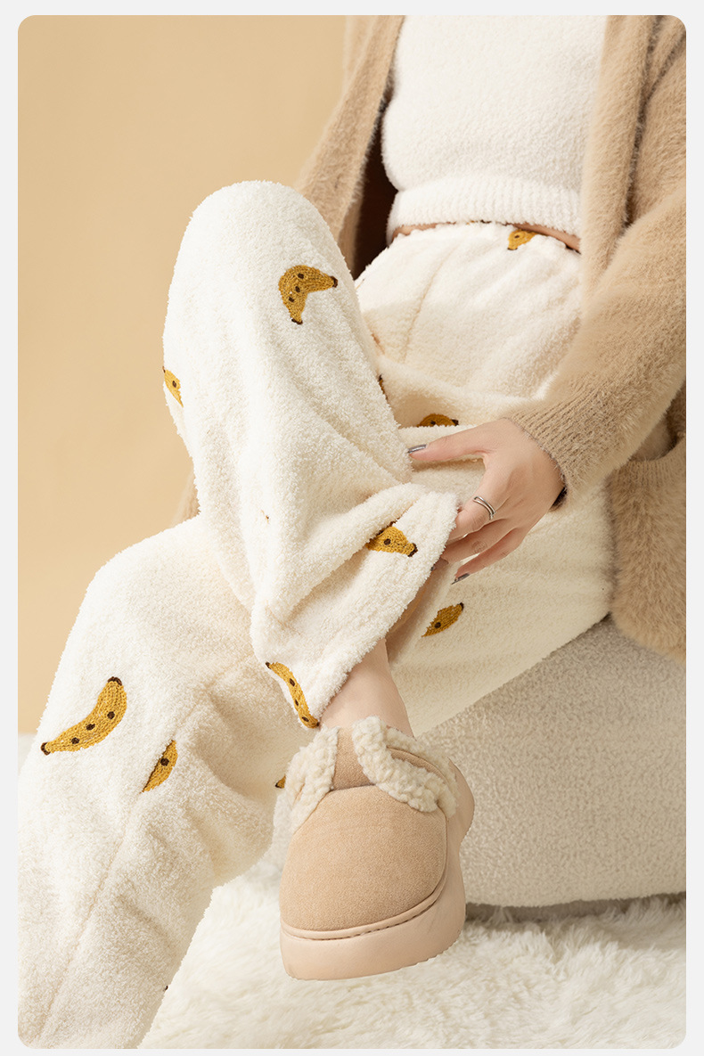 秋冬の妊婦の睡眠のズボンは厚い保温のサンゴの絨毯の家庭の腹のズボンを厚くして、外に着ることができて、肥料を加えてフランネルを増加します。