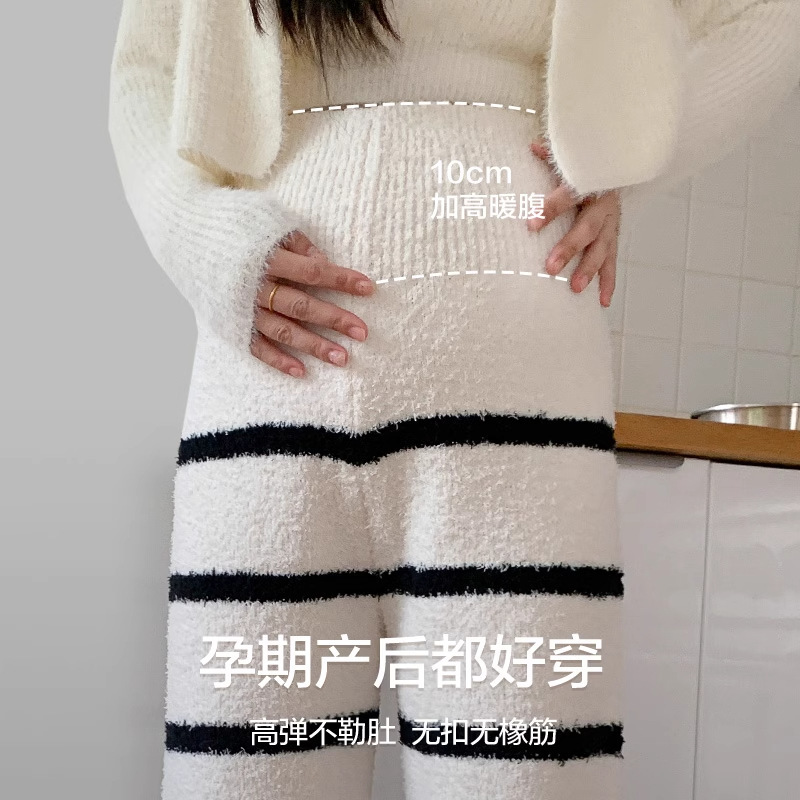 半边绒孕妇睡裤不勒肚秋冬加绒月子暖暖裤孕期居家裤遛弯保暖长裤