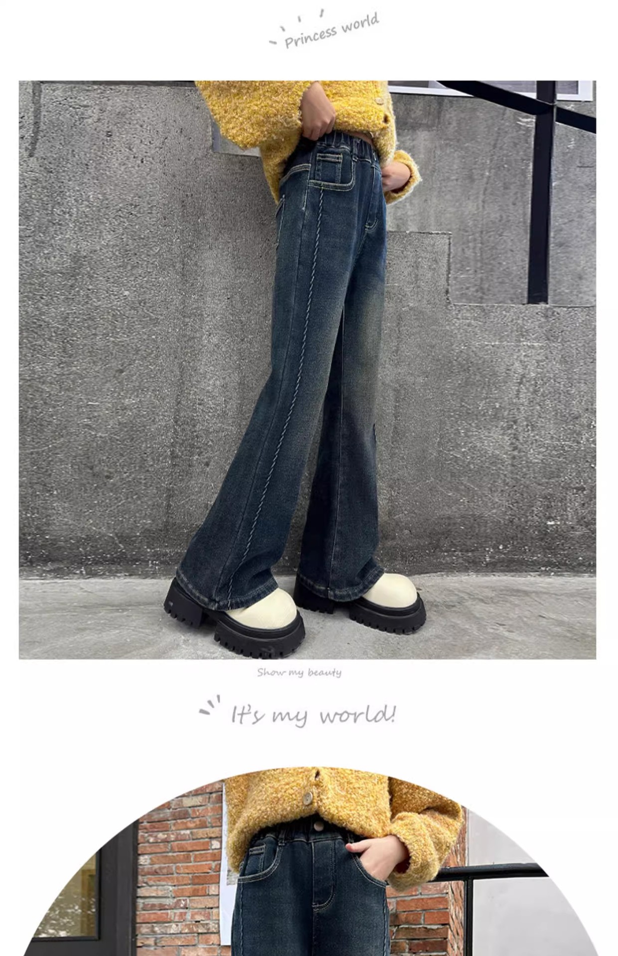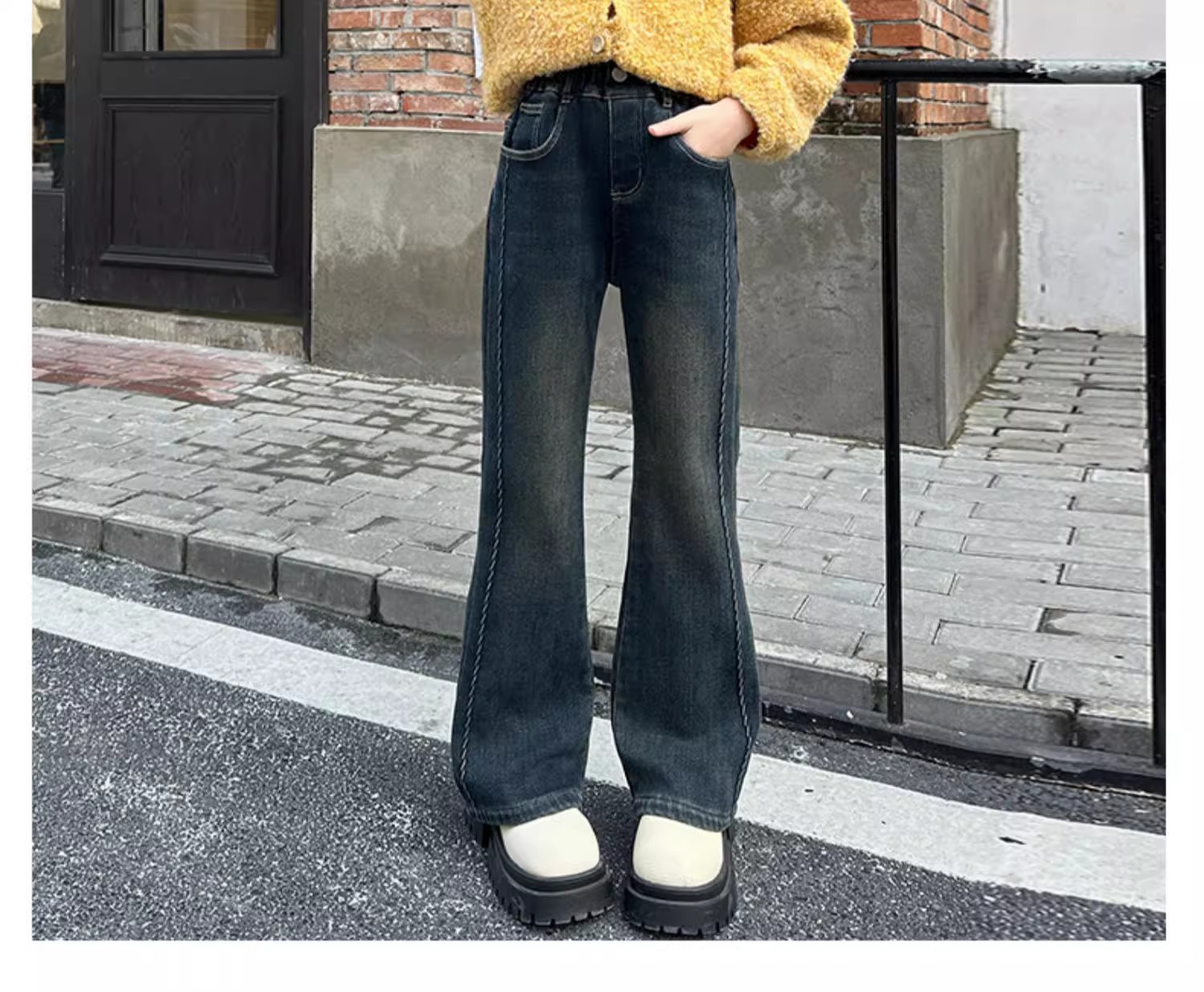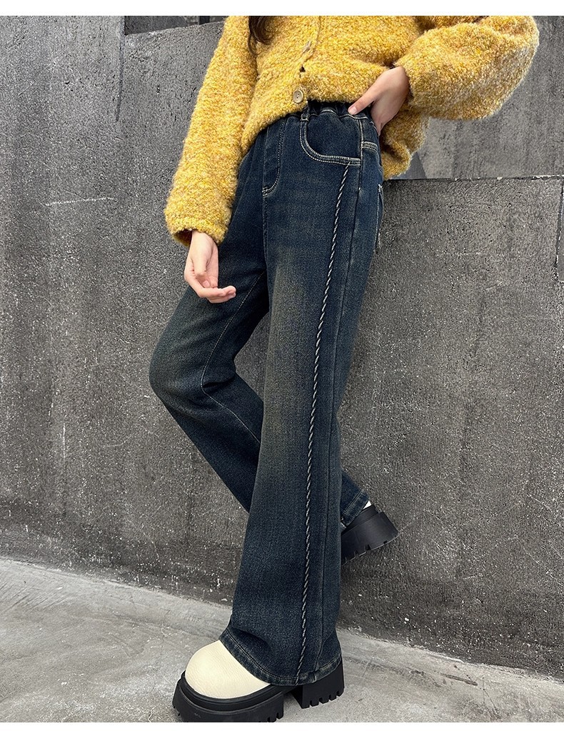 女の子用デニムパンツ、春秋、レトロ、伸縮性、超ソフト、デニムフレアパンツ、子供用、女の子用、おしゃれ、カジュアル、多用途