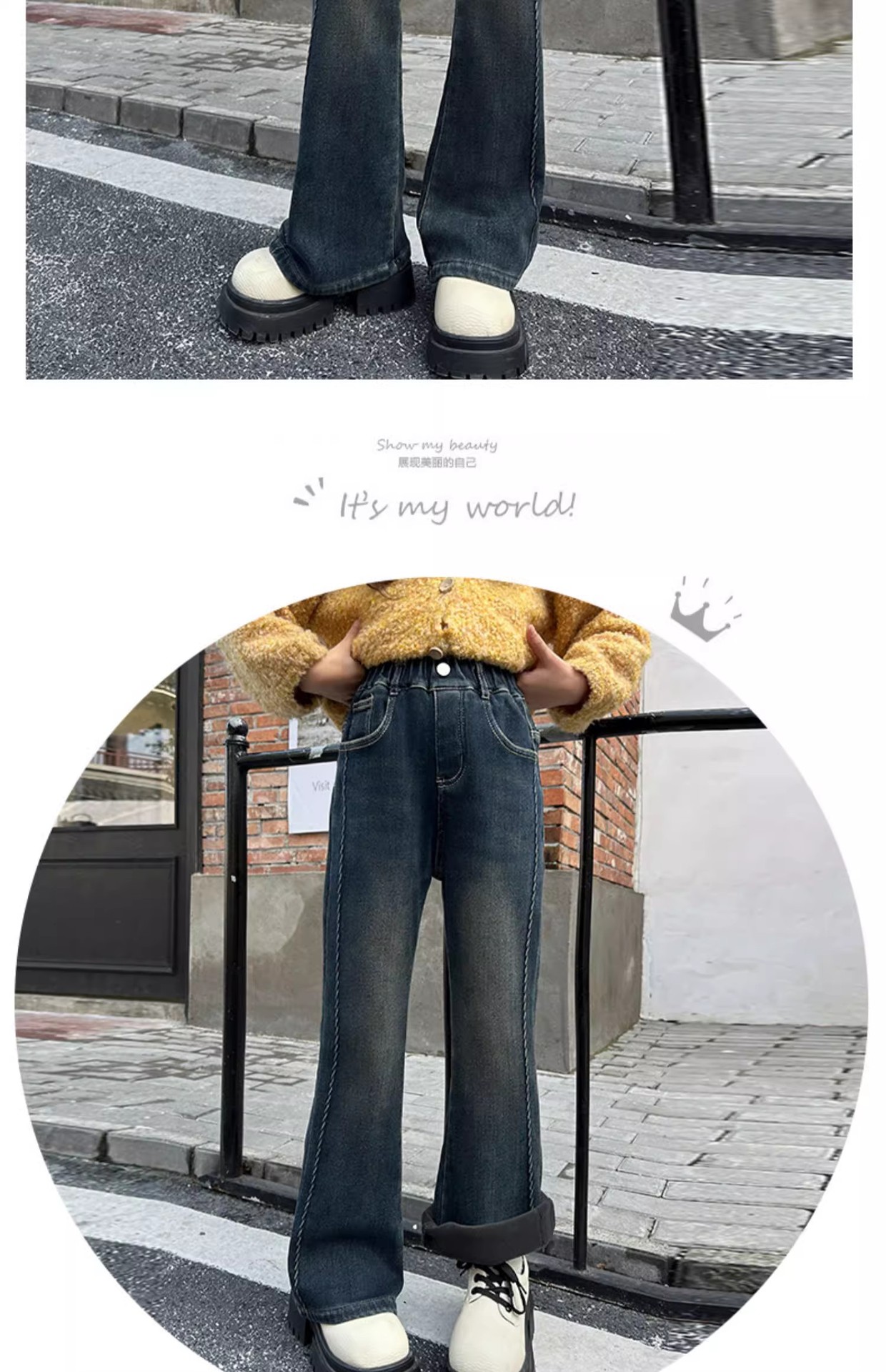 女の子用微フレアデニムパンツ 春秋用 2025年 女児韓国風パンツ 子供用フレアパンツ キッズパンツ トレンドブランド