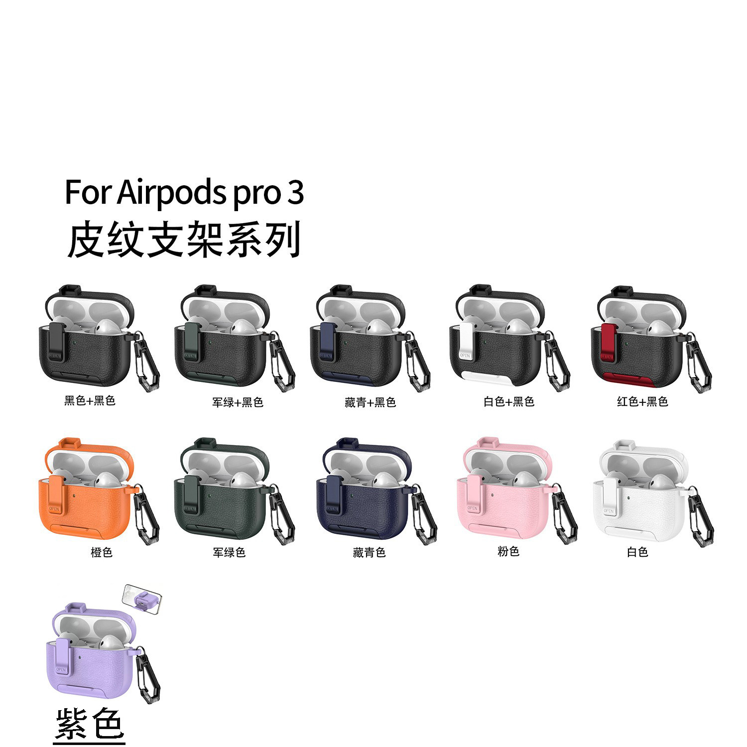 新款适用Airpods pro3保护套蓝牙耳机壳皮纹锁扣支架苹果Pro2代壳