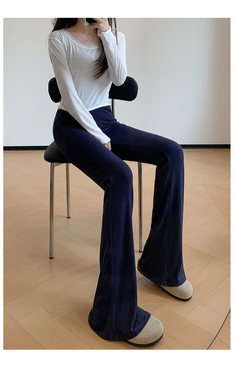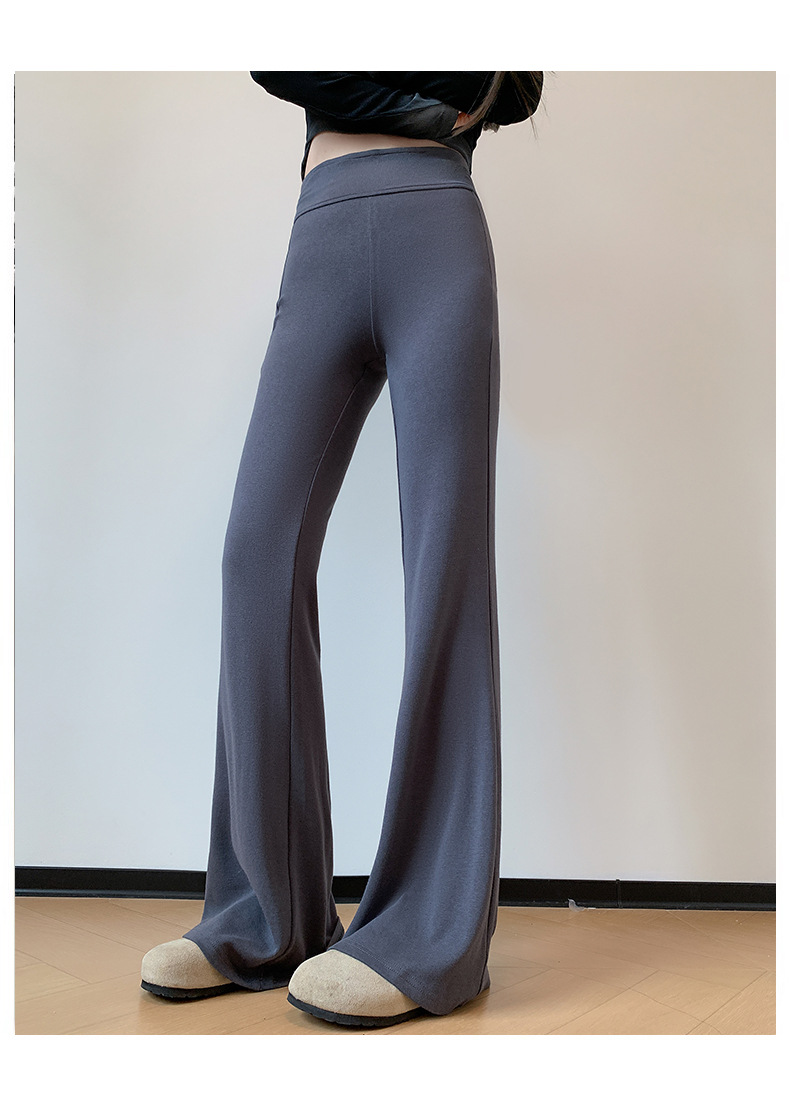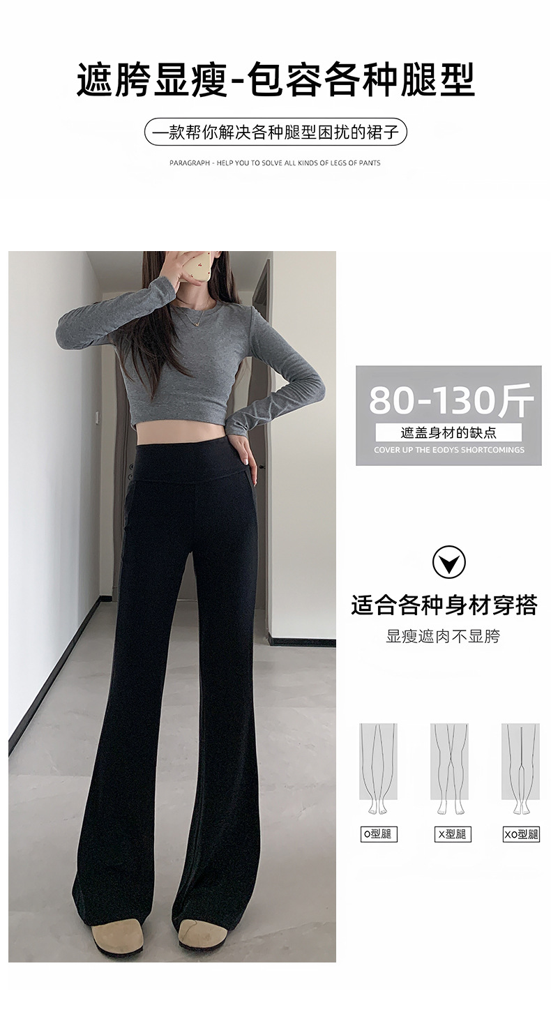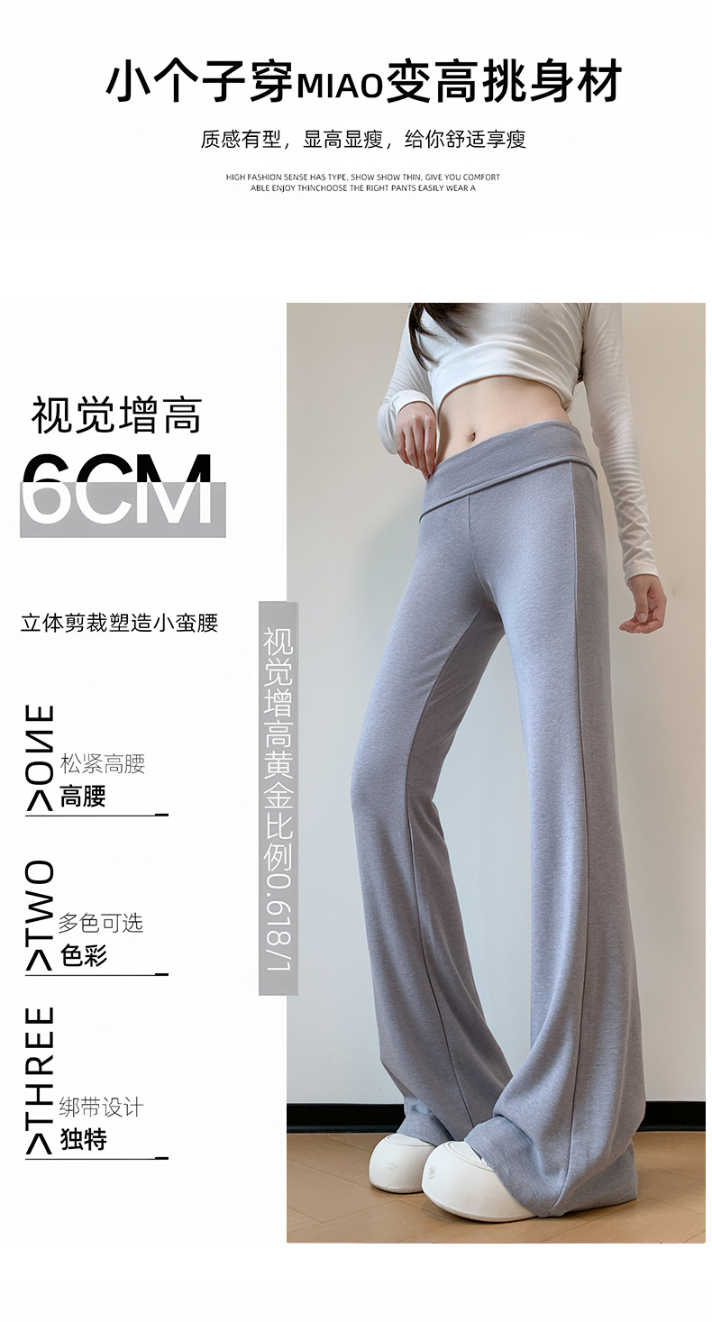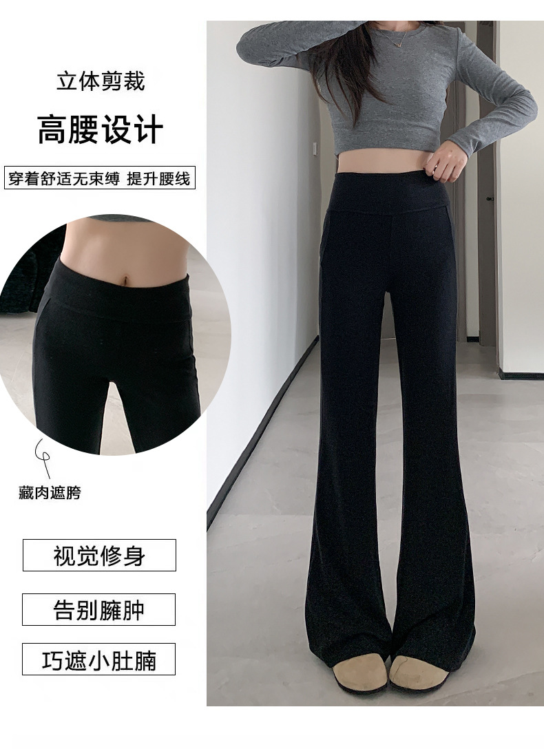 スリット入り高伸縮性2025秋冬新作ハイウエストドレープパンツ女性用小柄体型スリムフィット微フレアパンツ