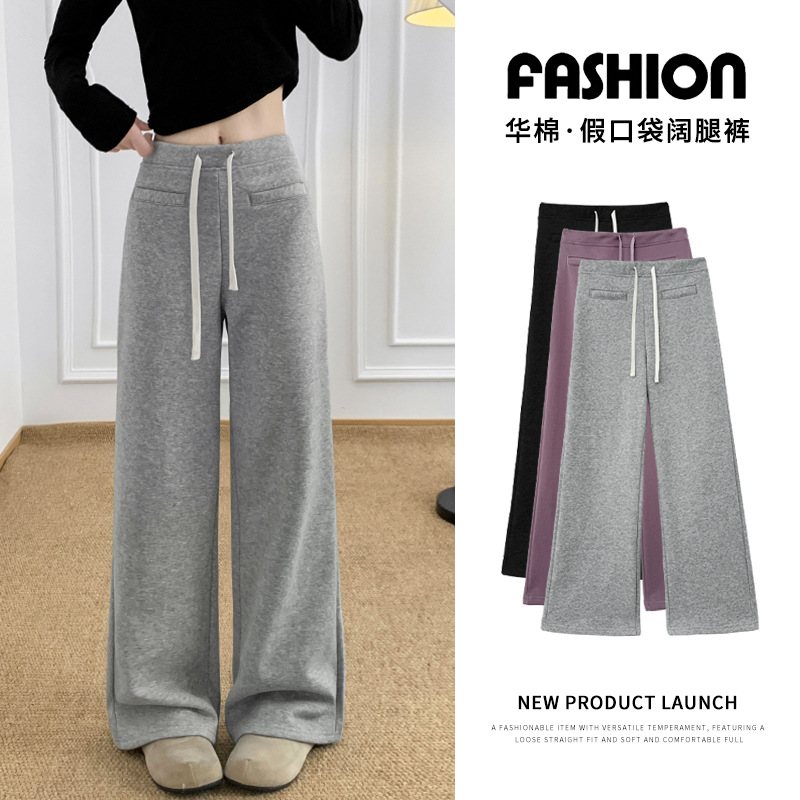 慵懒加绒阔腿裤女秋冬保暖高腰宽松卫裤小个子垂感显瘦运动裤