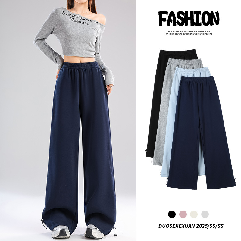 藏青色运动裤女2025春秋新款高腰窄版显瘦卫裤垂感直筒休闲阔腿裤