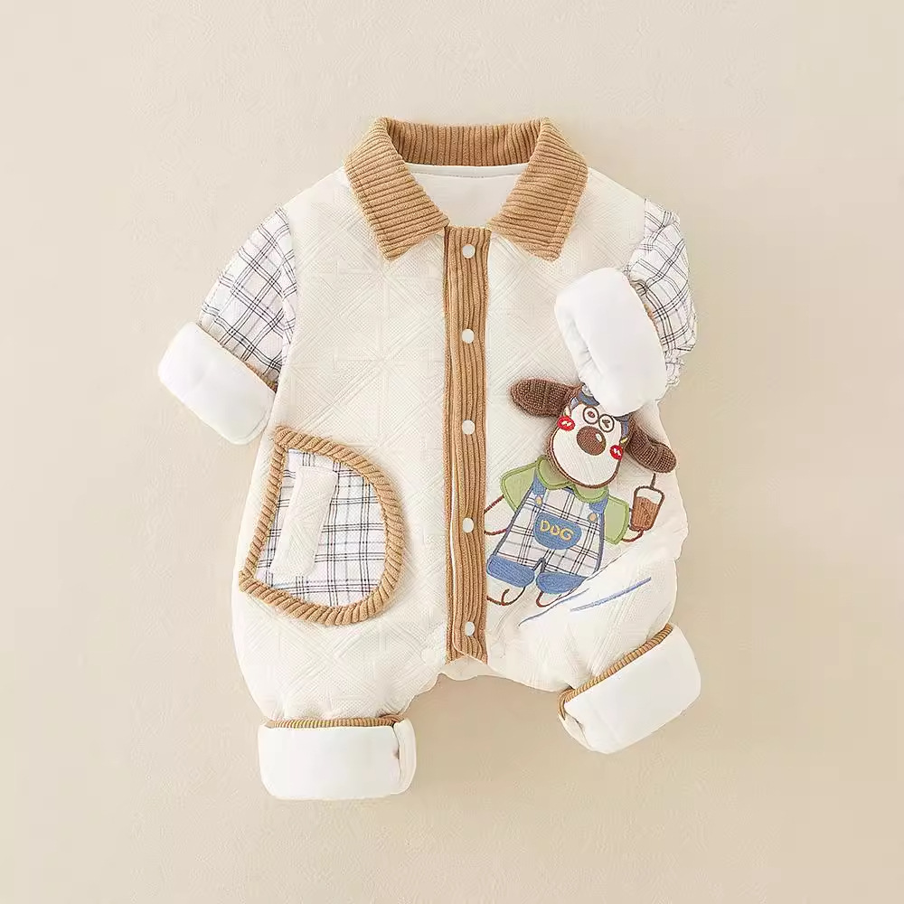 秋冬ベビーキルトジャンプスーツ、新生児服、ベビーコットン服、厚手防寒着、お出かけ服、ハイハイ服