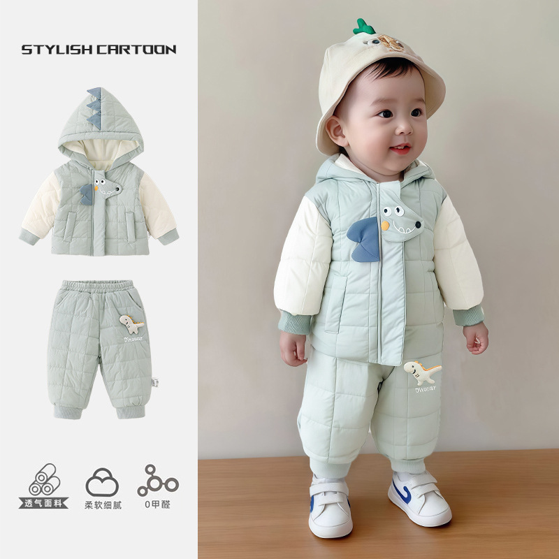 2025秋冬新款婴儿a类保暖衣服宝宝套装儿童夹棉加厚棉服男童冬季