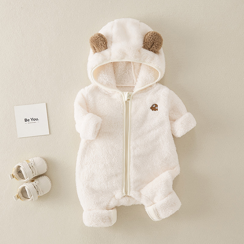 赤ちゃんの秋と冬のフランネルジャンプスーツ、暖かい綿の服、男性と女性のベビー服、フード付きの外出服、ハイハイ服