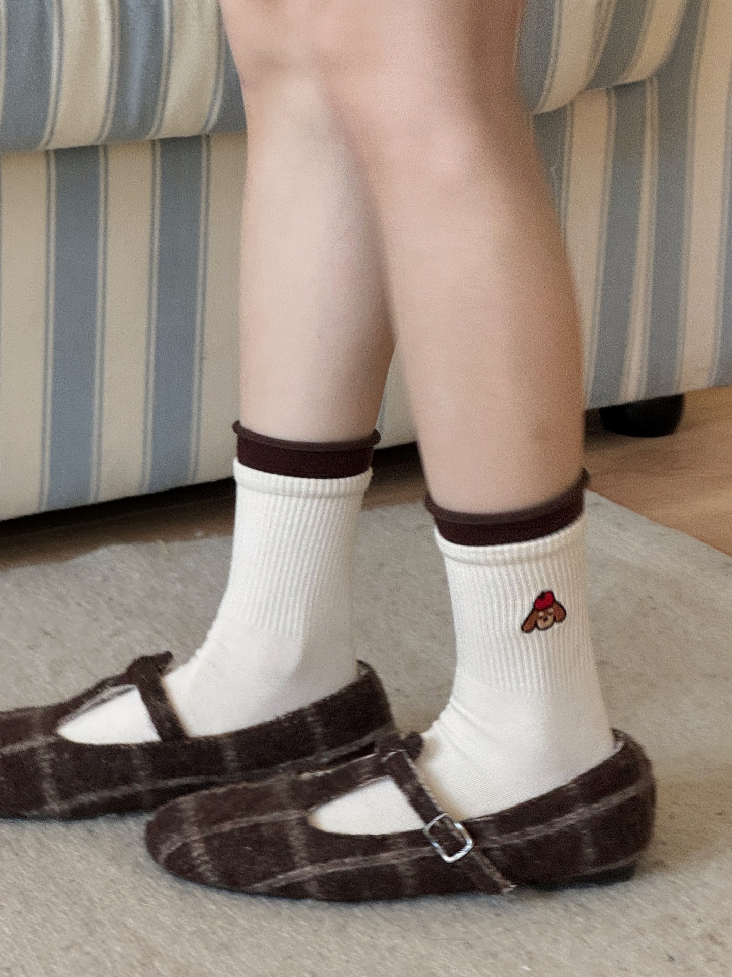 秋冬卡通刺绣小狗条纹羊毛袜子女中筒袜日系加厚保暖可爱羊毛长袜