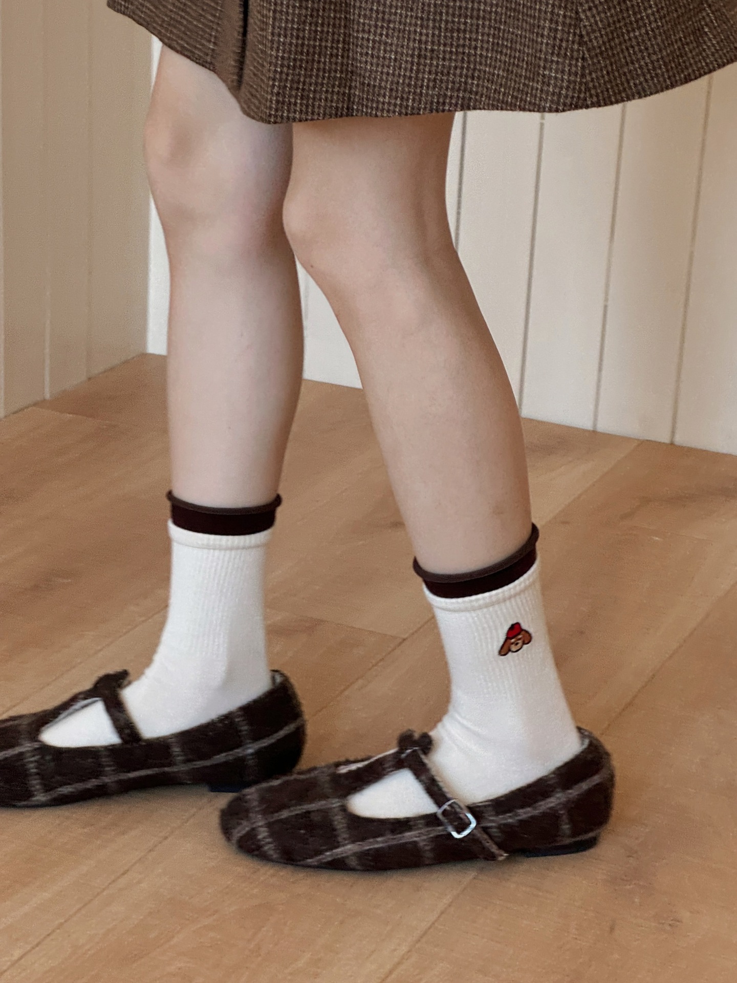 咖色美拉德羊毛保暖卡通刺绣可爱双针袜子女ins潮日系秋冬堆堆袜