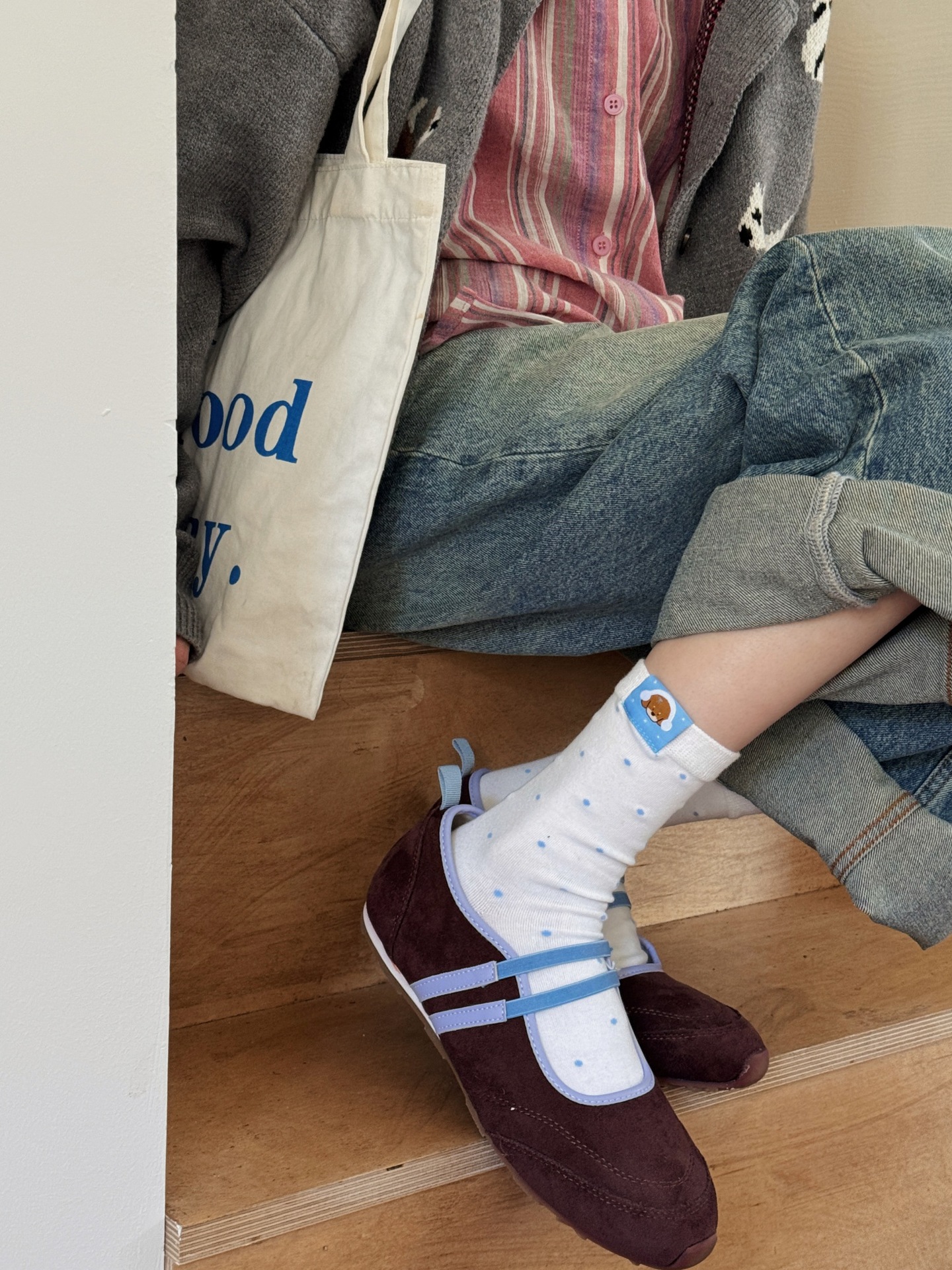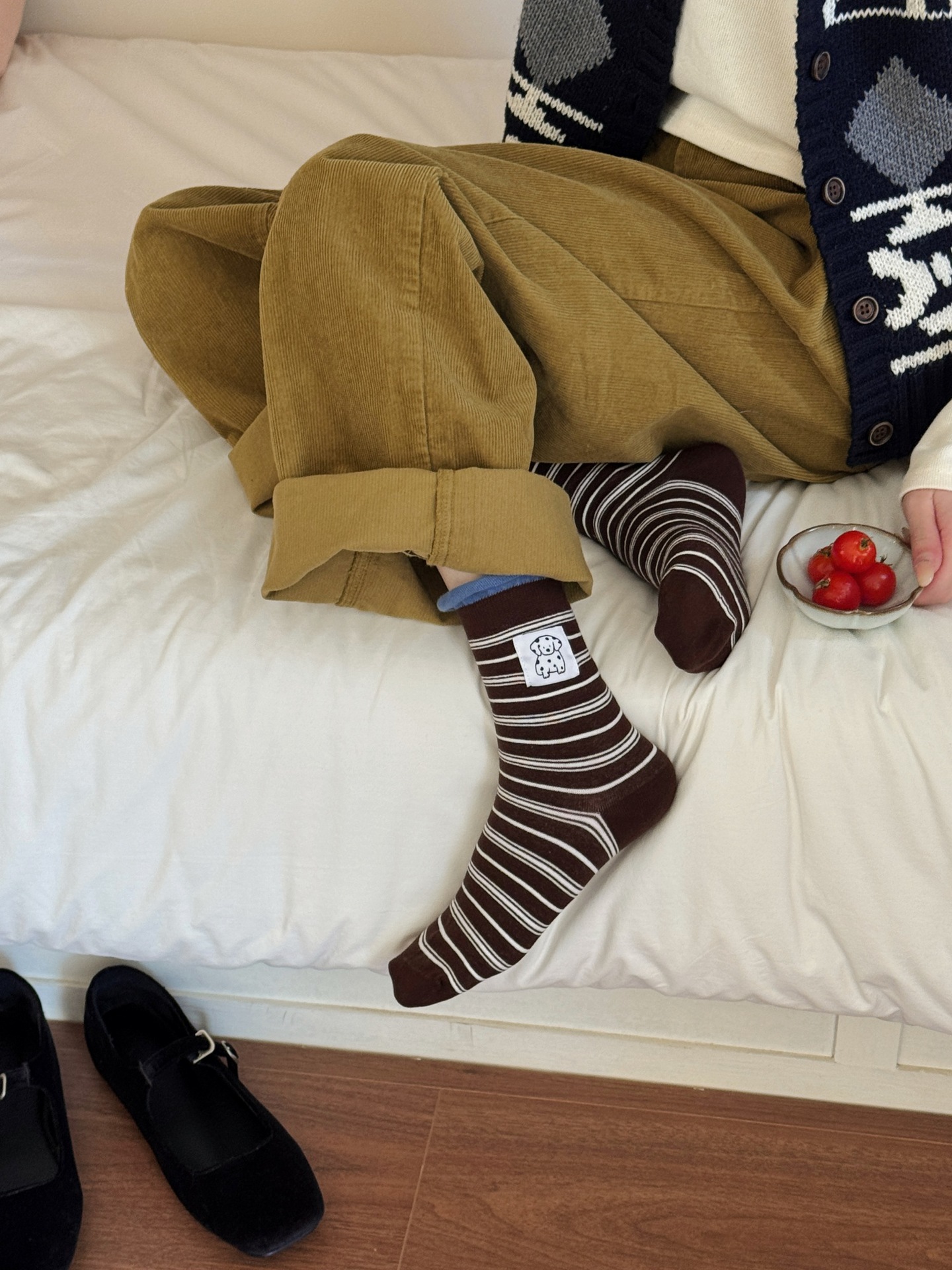 良い韓国の靴下韓国insはブロガーの刺繍の蝶結びの靴下を着ています。