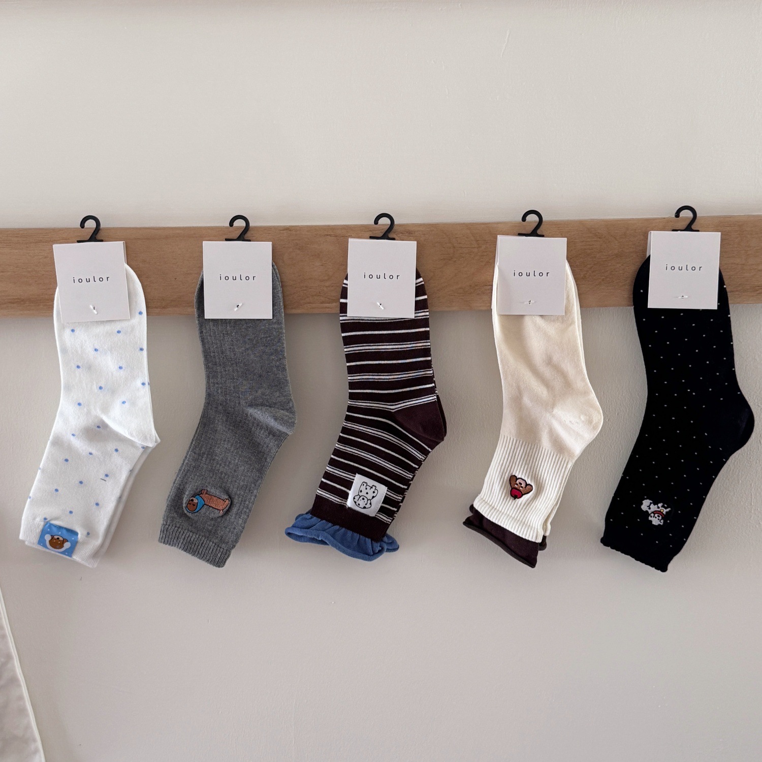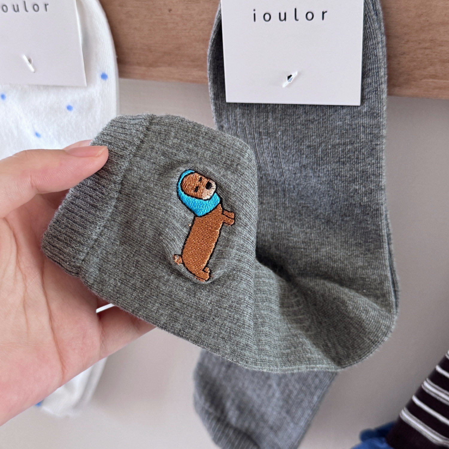 IOULOR卡通刺绣腊肠狗ins袜子2025秋冬百搭精梳棉吸汗无骨中筒袜