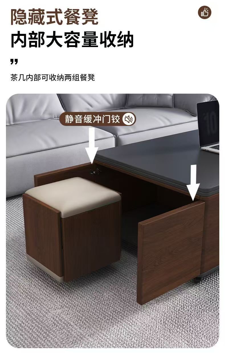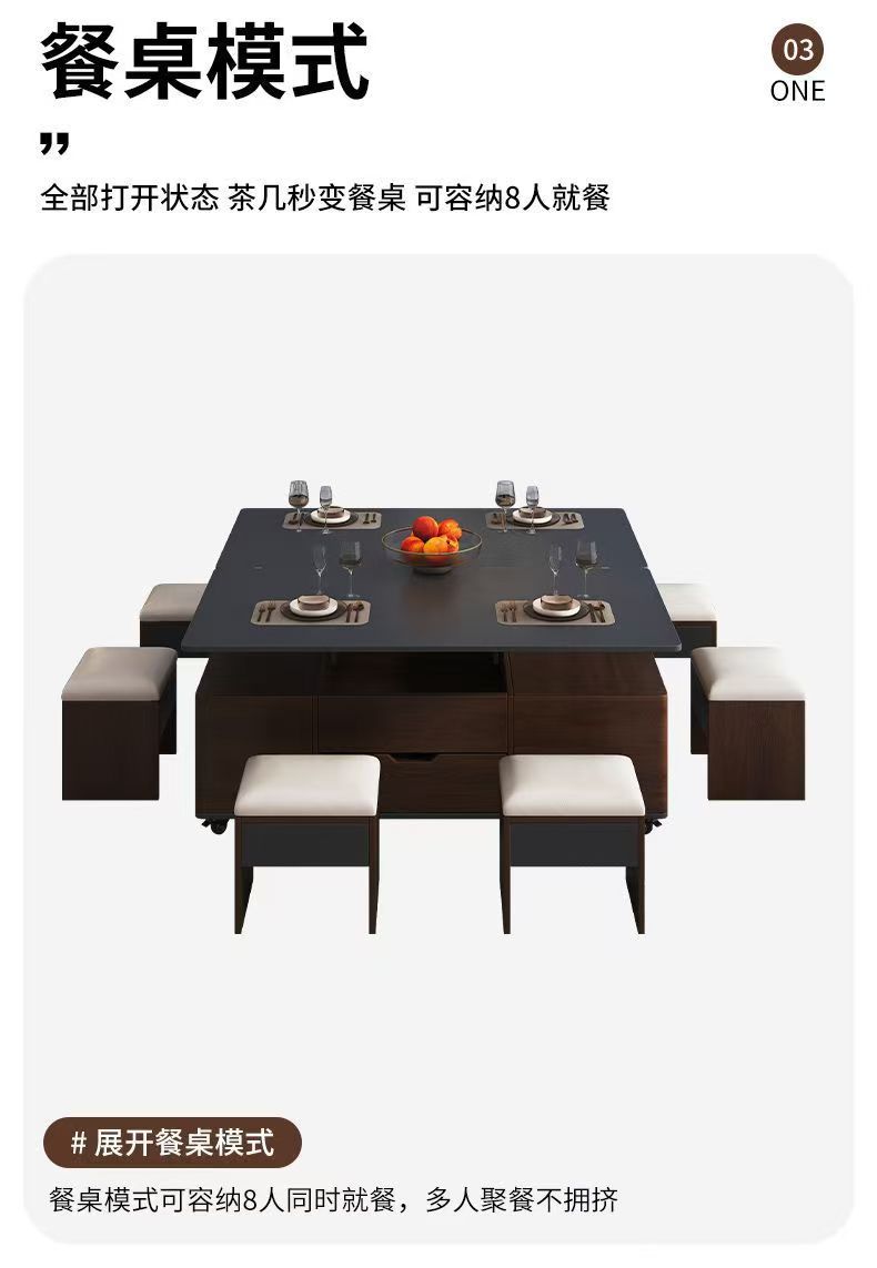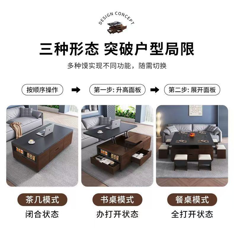 岩板多功能茶几两用小户型茶具家用餐桌升降一体茶台客厅收纳折叠