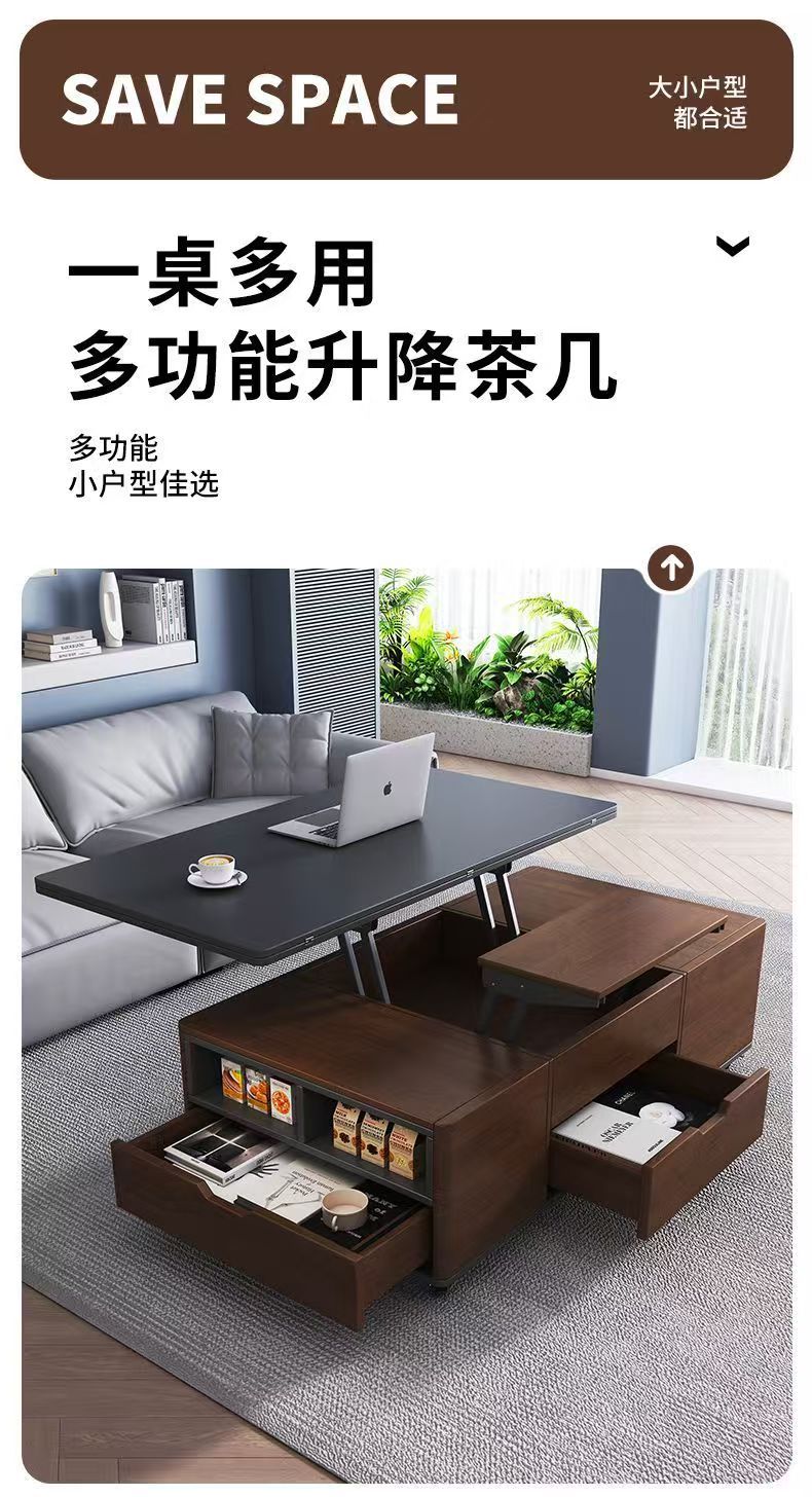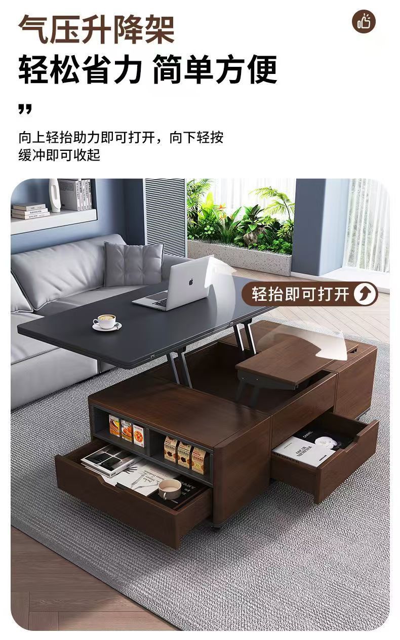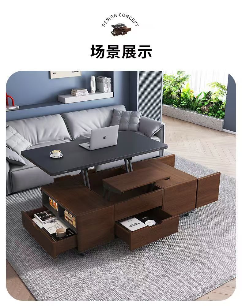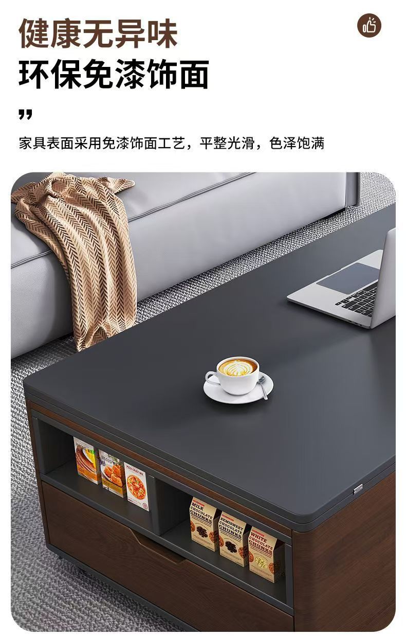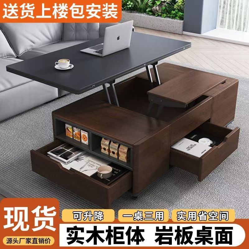 现代简约多功能岩板升降茶几餐桌一体两用小户型家用客厅可移动型
