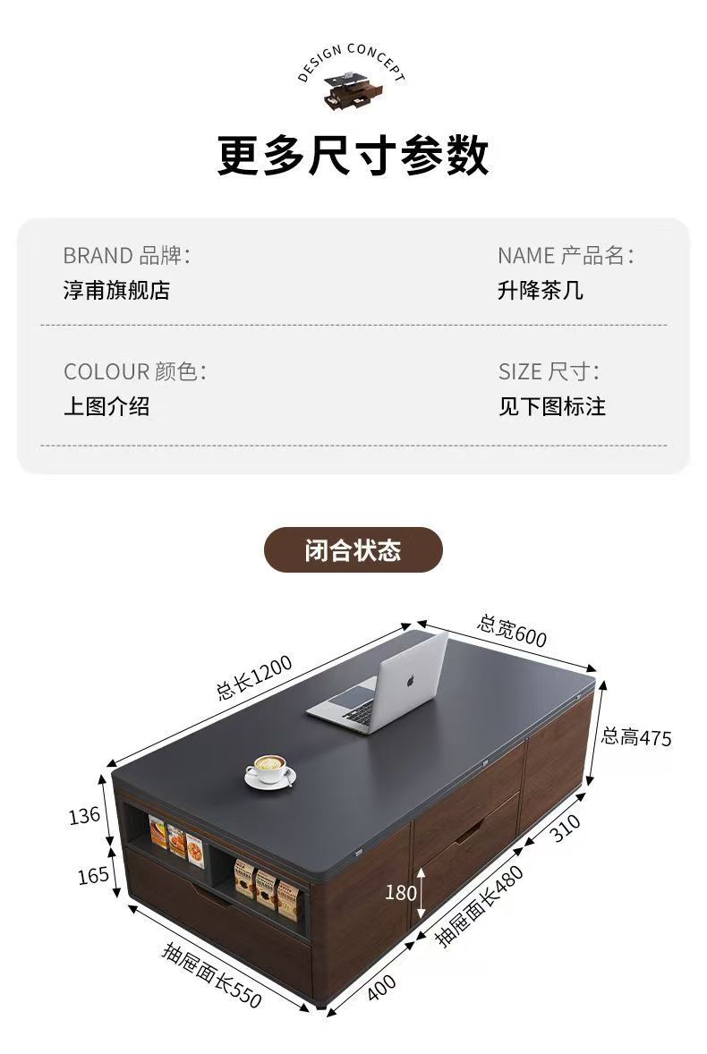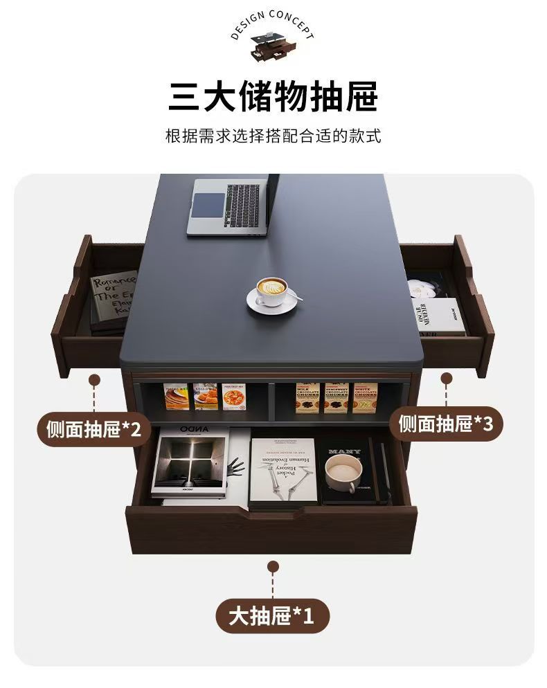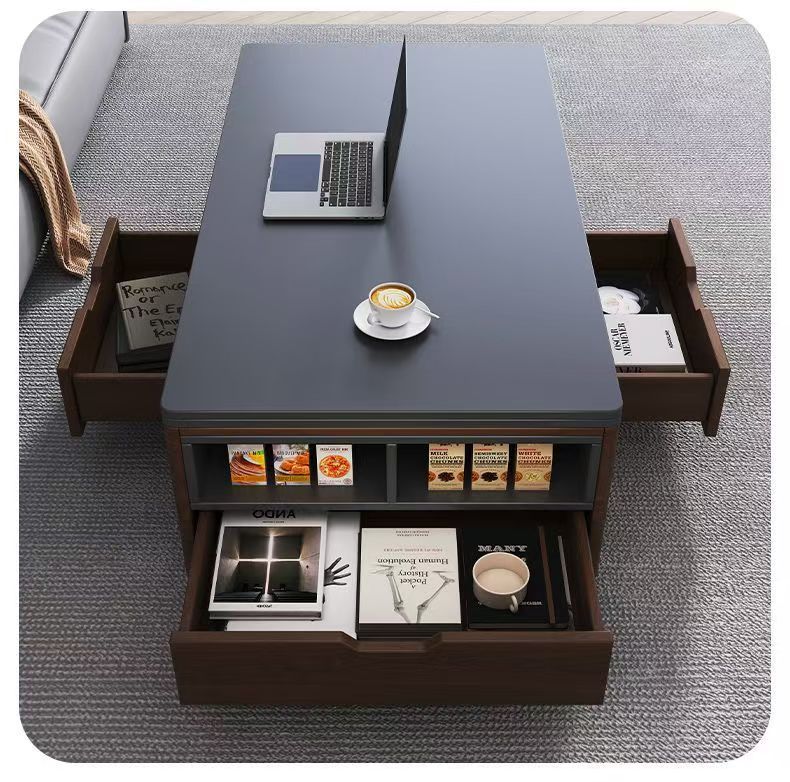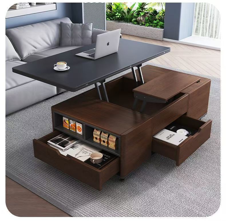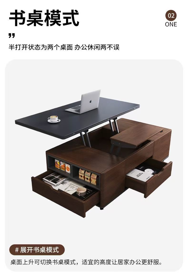 现代简约多功能岩板升降茶几餐桌一体两用小户型家用客厅可移动型