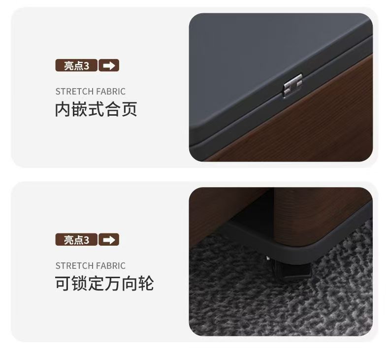 岩板折叠茶几升降多功能餐桌一体二合一客厅家用小户型可移动带凳
