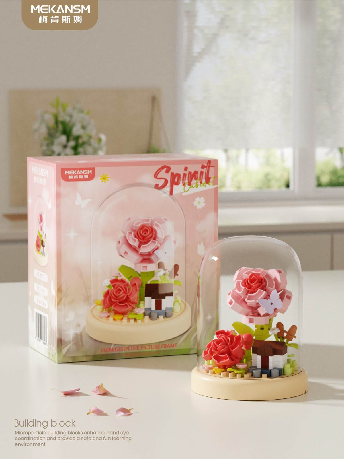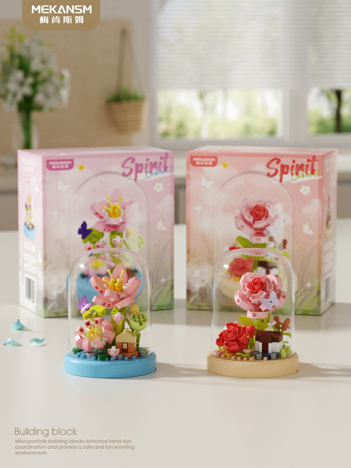 祈愿花屋微颗粒拼组装积木益智玩具永生花母亲教师节日礼品小摆件