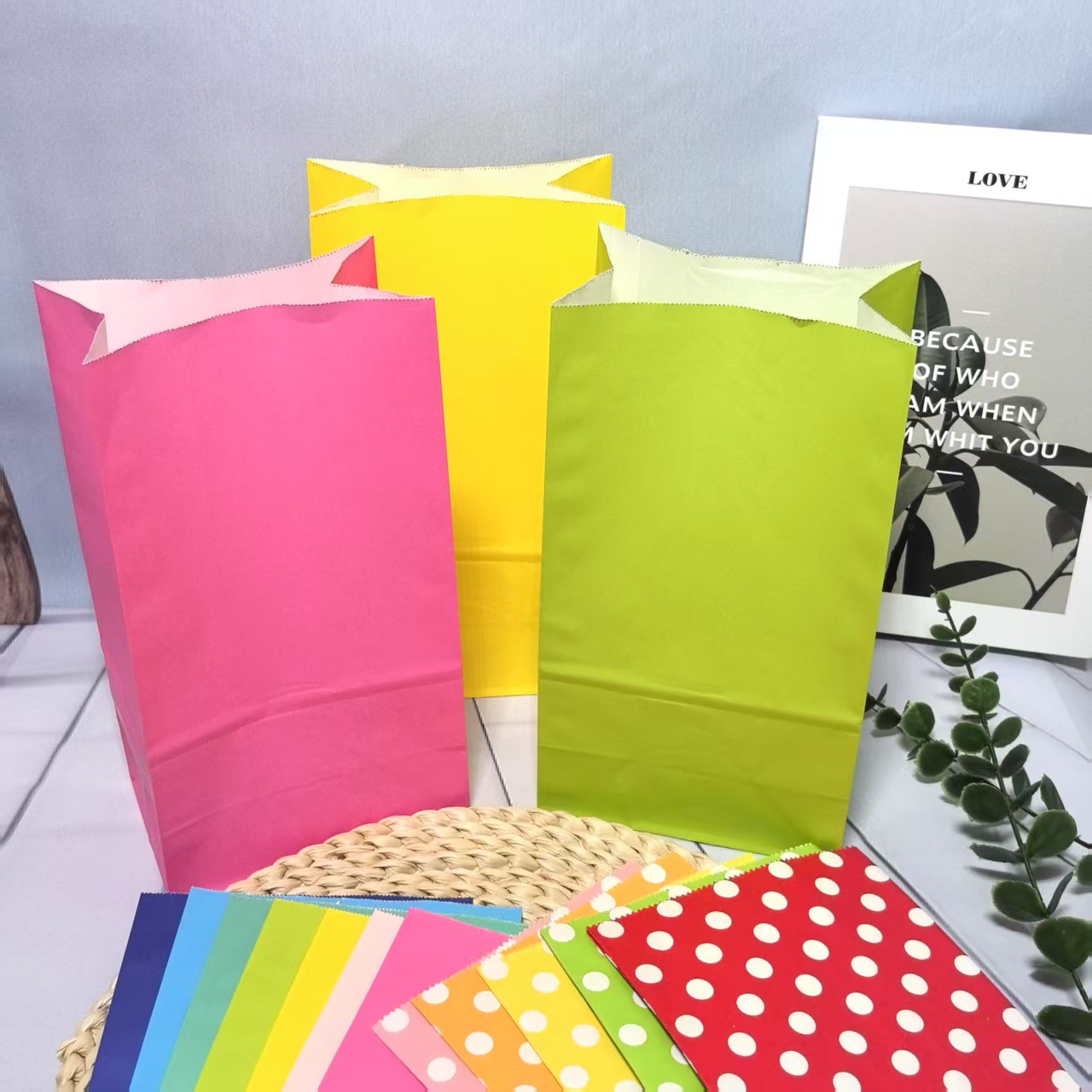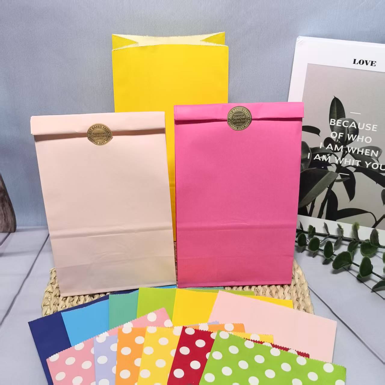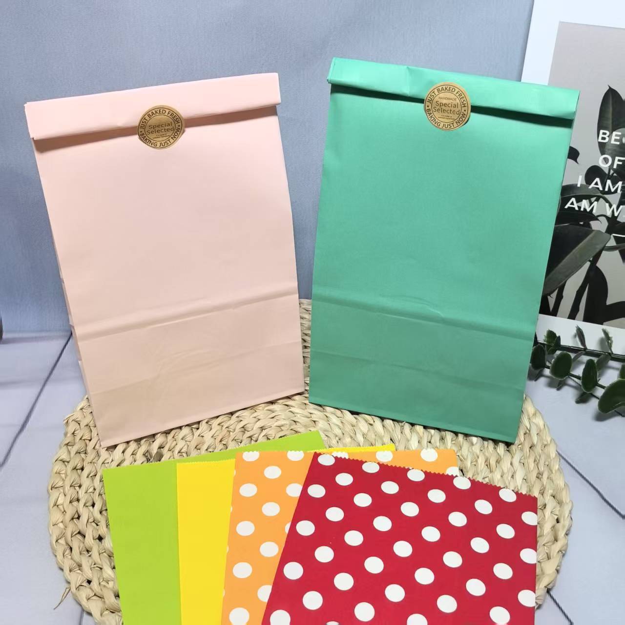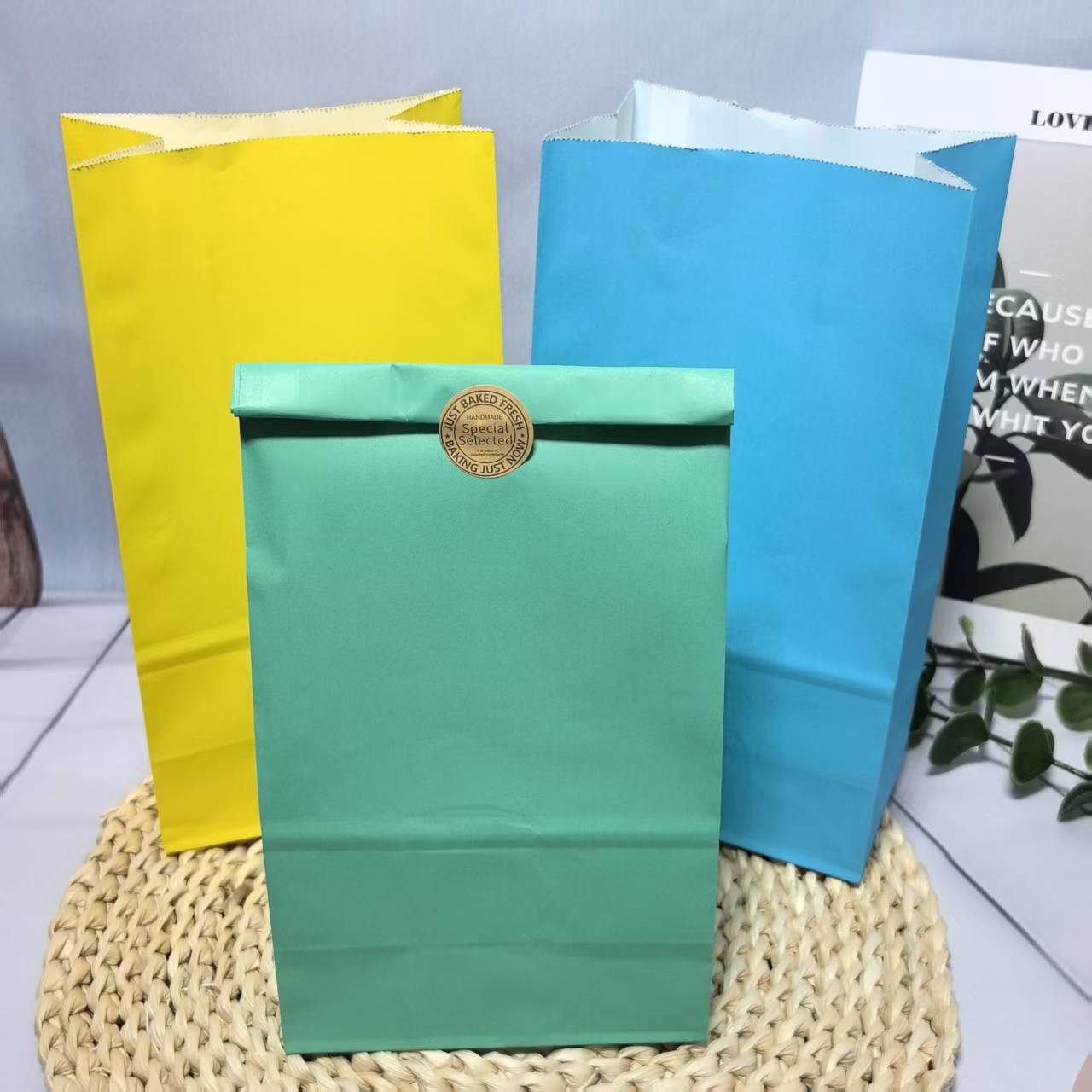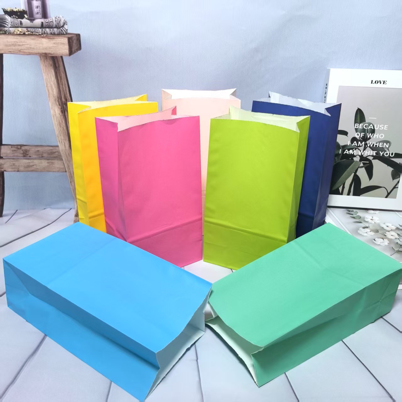 彩色牛皮纸礼品纸袋定 做平口打包袋方底无提手糖果牛皮纸袋定制