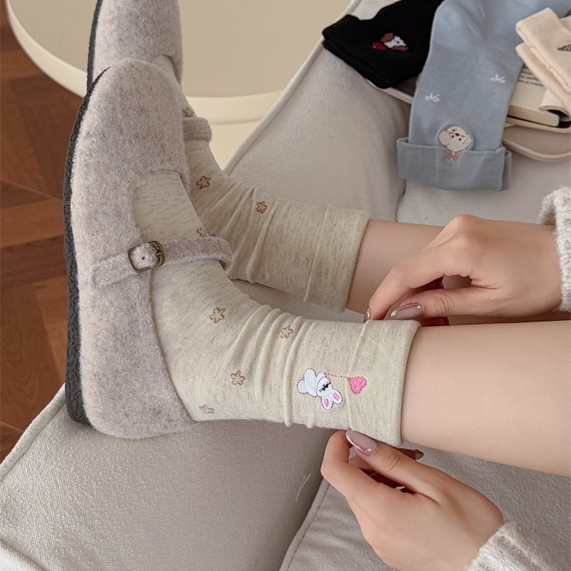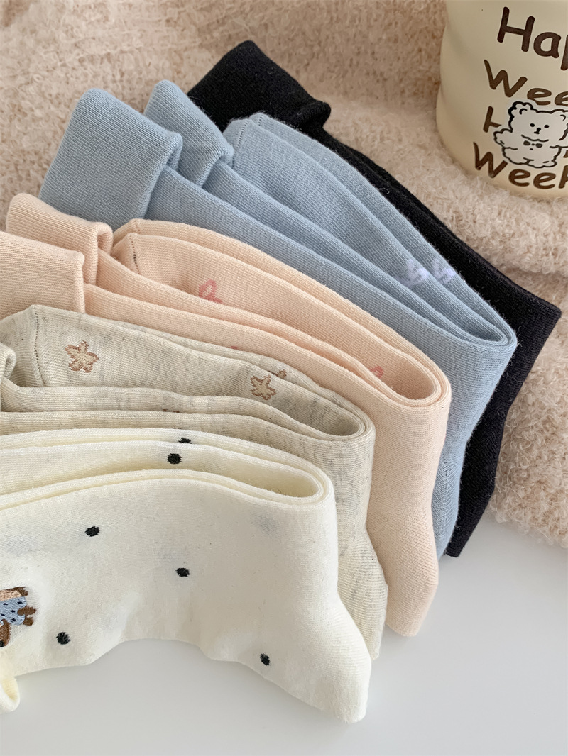 靴下の女性の有酸素綿ins風熊頭漫画の中筒靴下秋冬女子の柔らかいモチは汗を吸って靴下の卸売りをします。