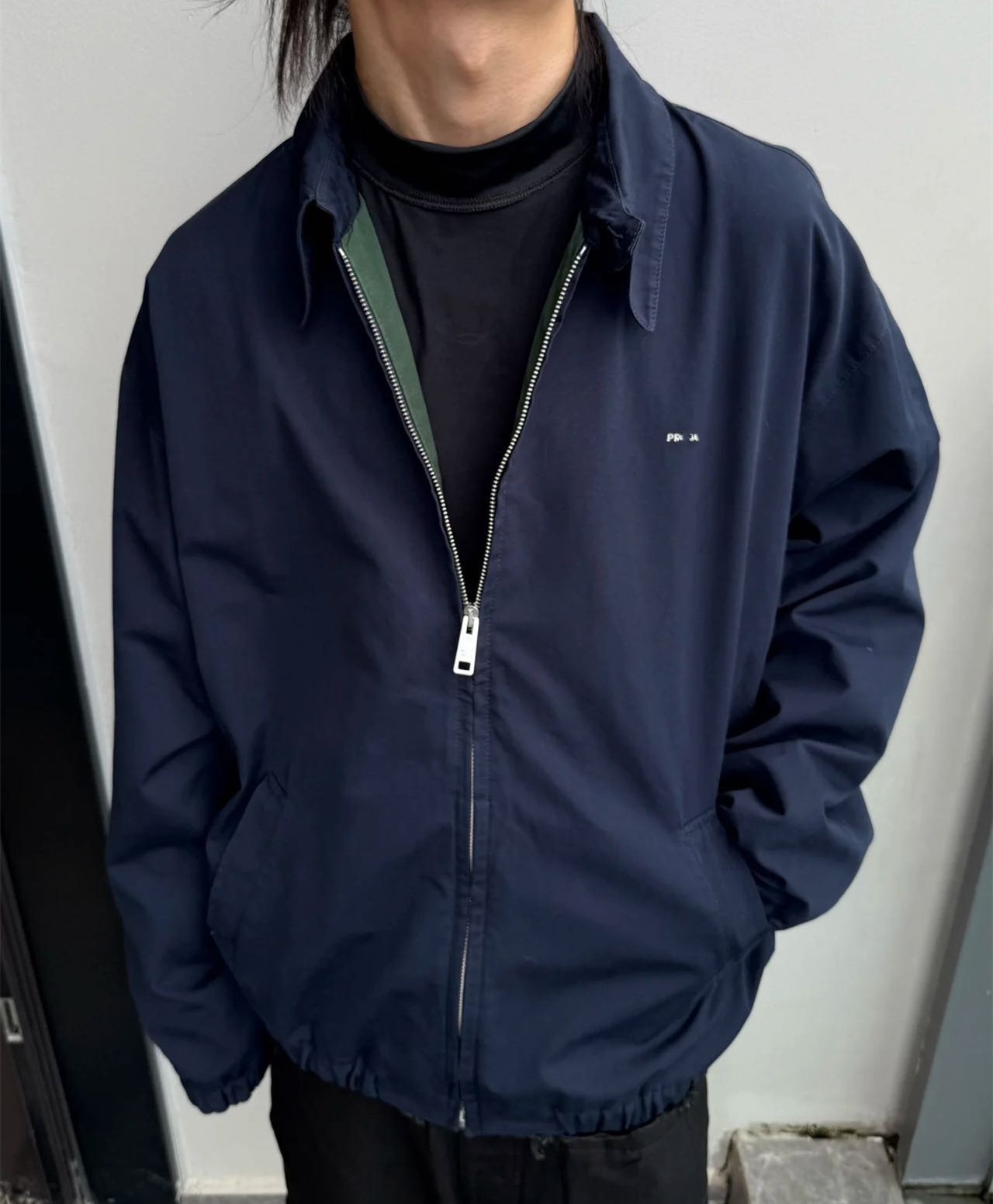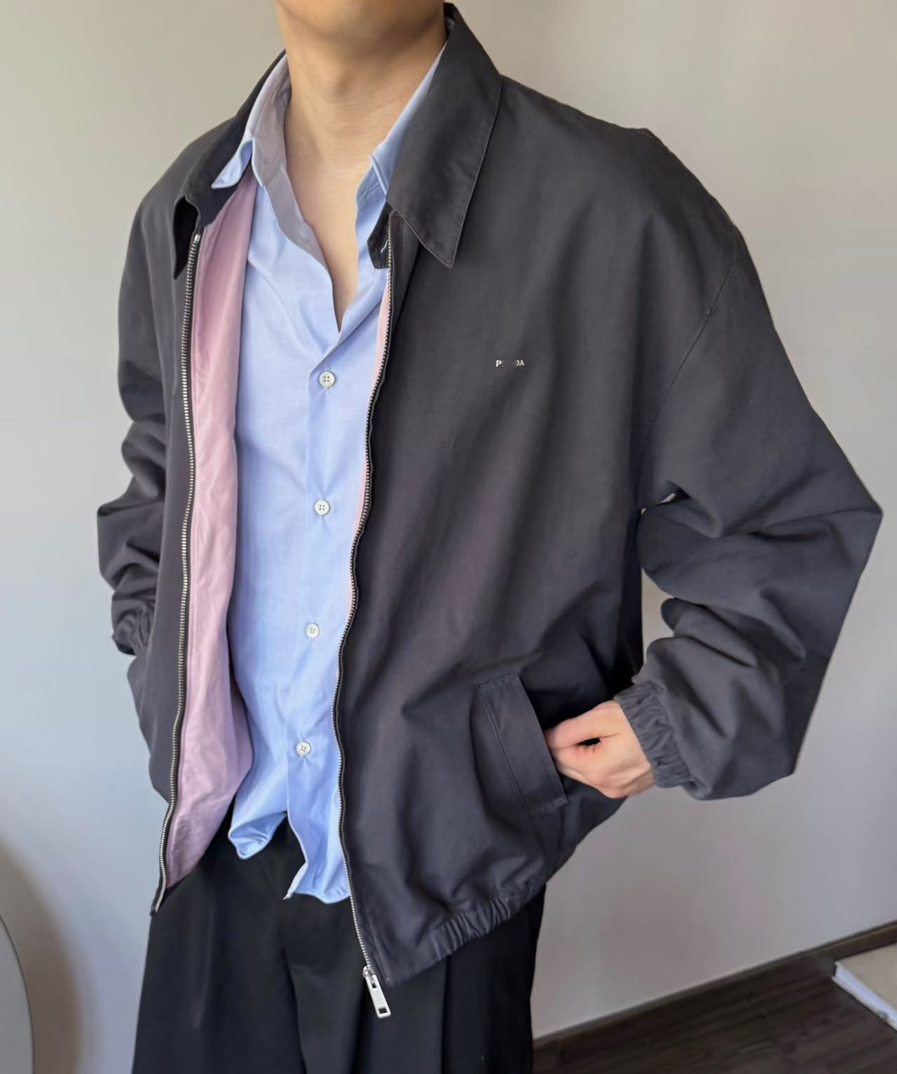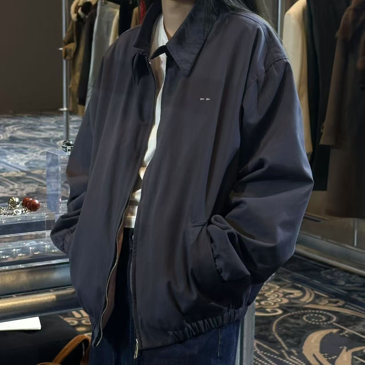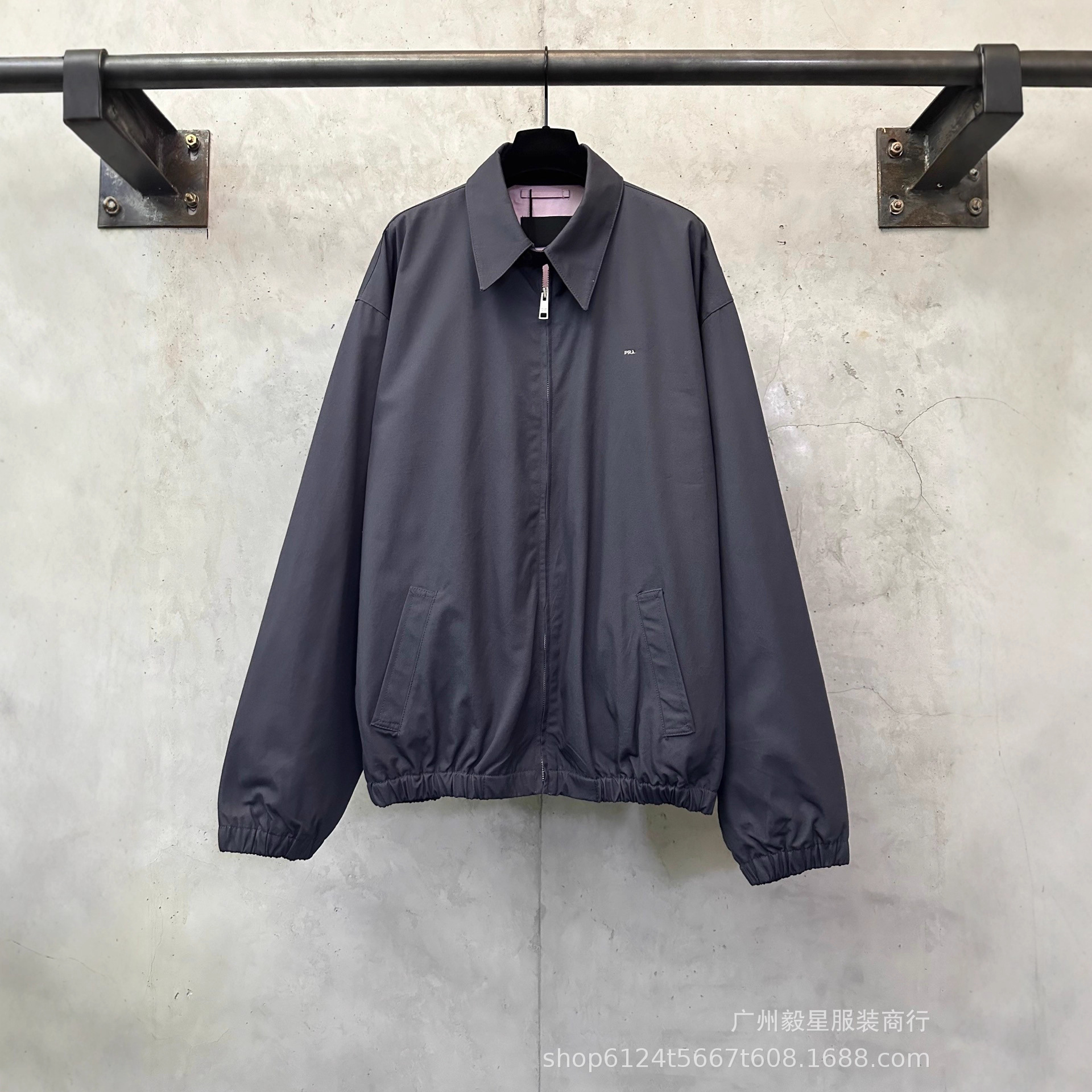 实拍25新款高版本P家小字母logo印花翻领哈灵顿夹克百搭男女同款