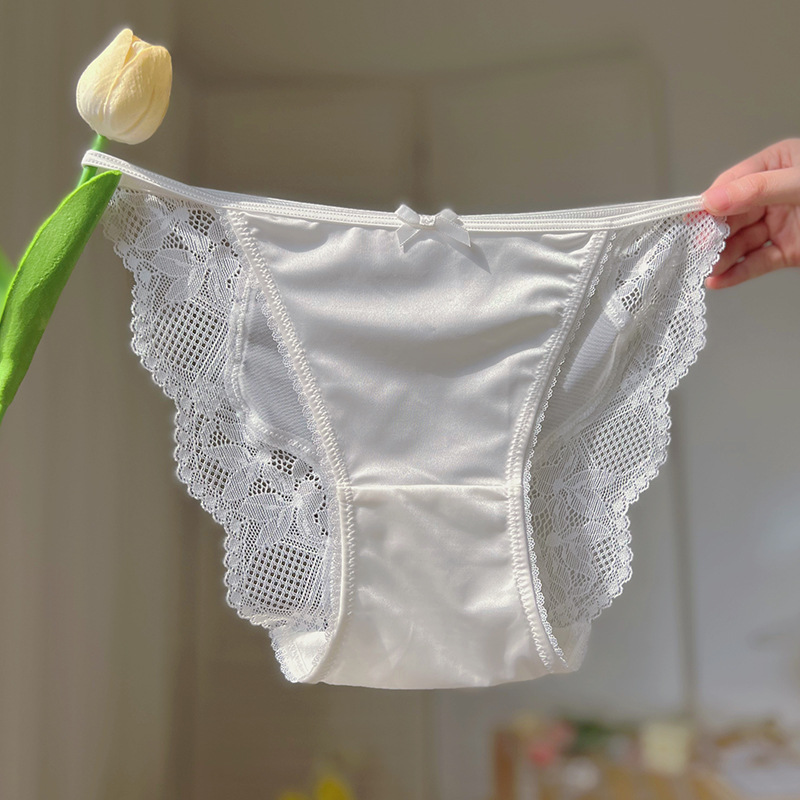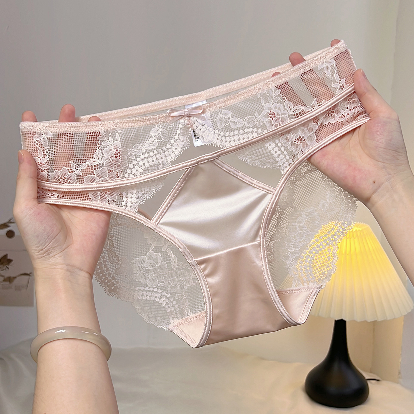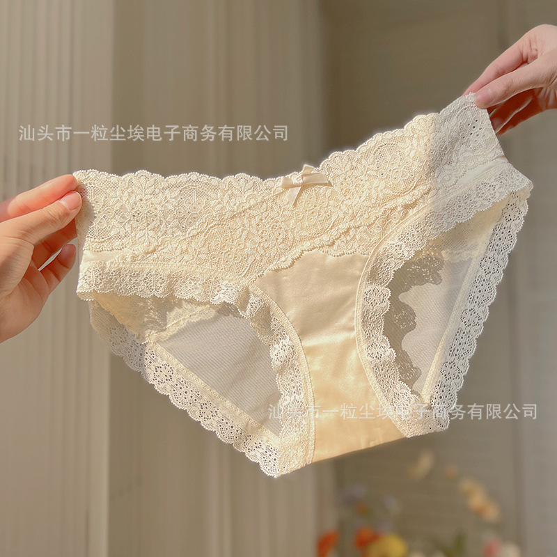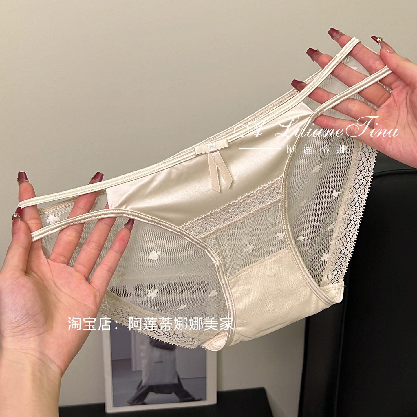 花媚纯欲蕾丝缎面女士内裤纯棉裆爱心网纱双蝴蝶结低腰三角裤轻奢
