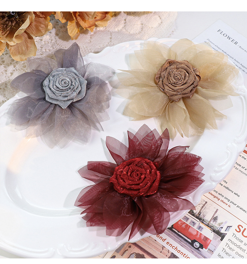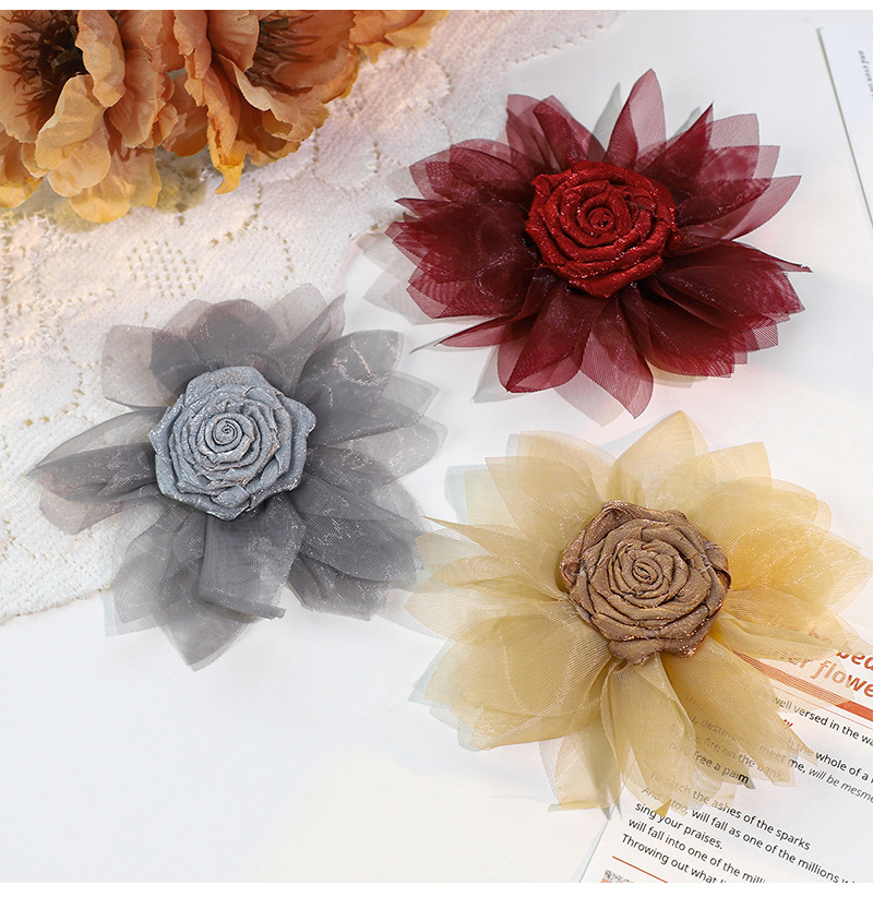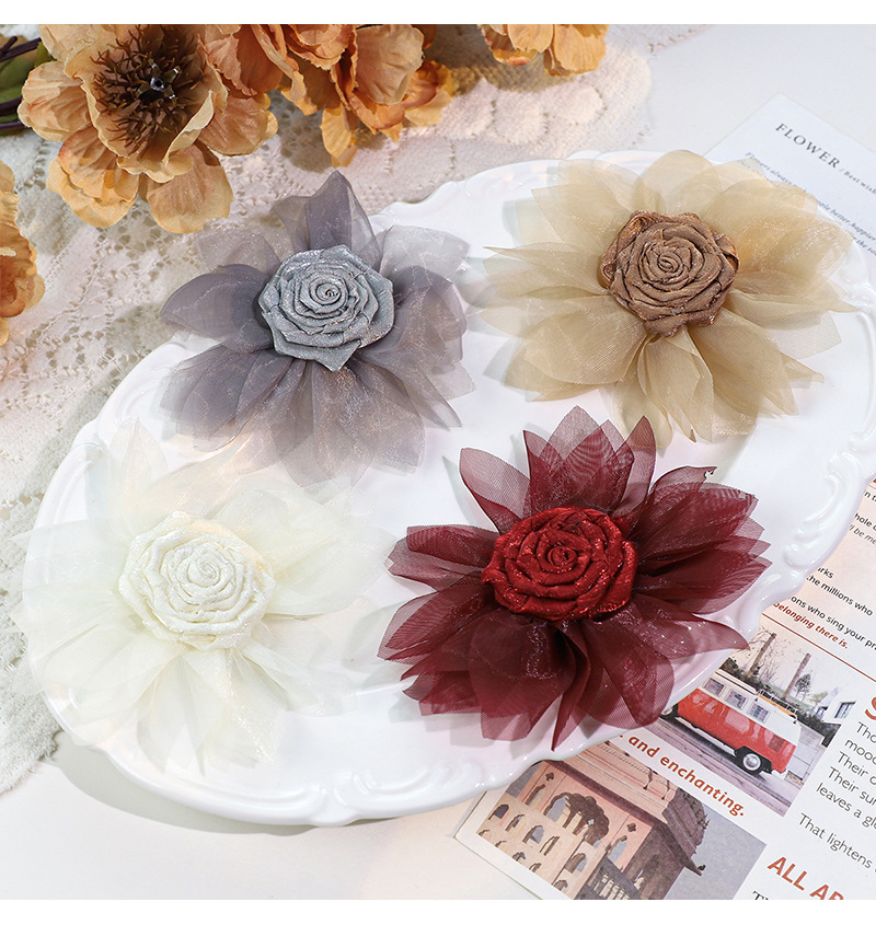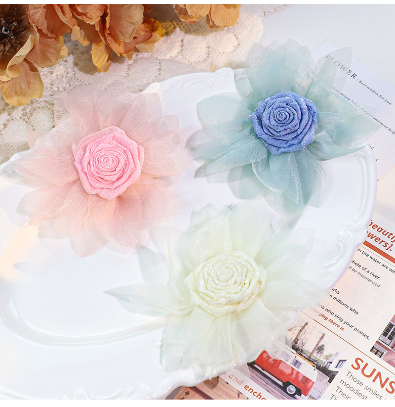 花DIYアクセサリー立体ヘアアクセサリー装飾品カラフルなシルクフラワー衣料品材料卸売オーガンジー花