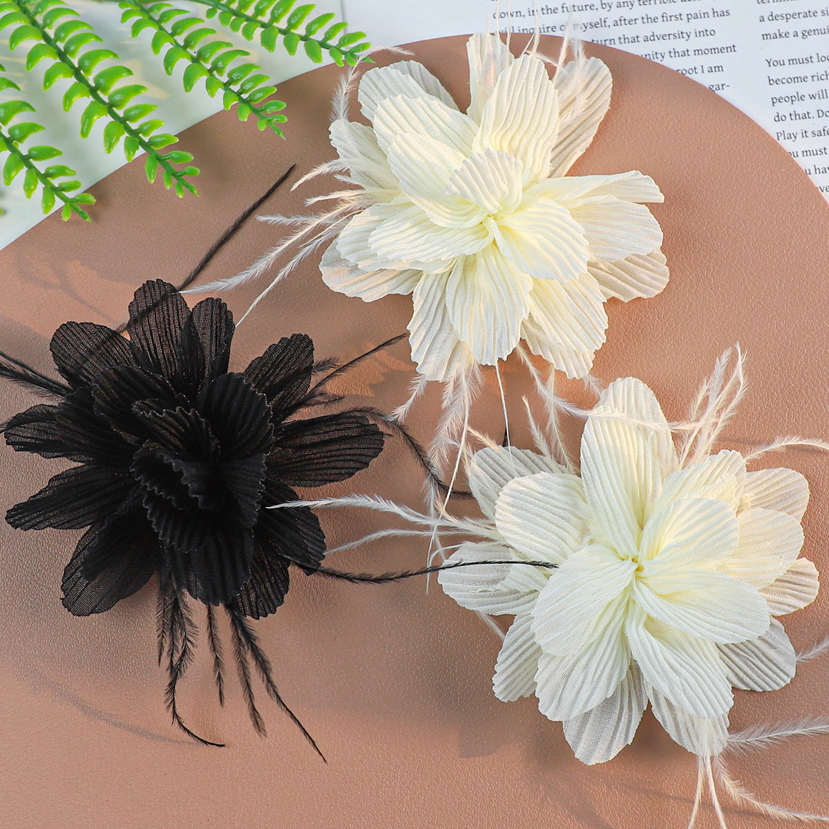 羽毛花朵辅料手工布艺纱花压皱花服装辅料超仙头饰配件卷心花批发