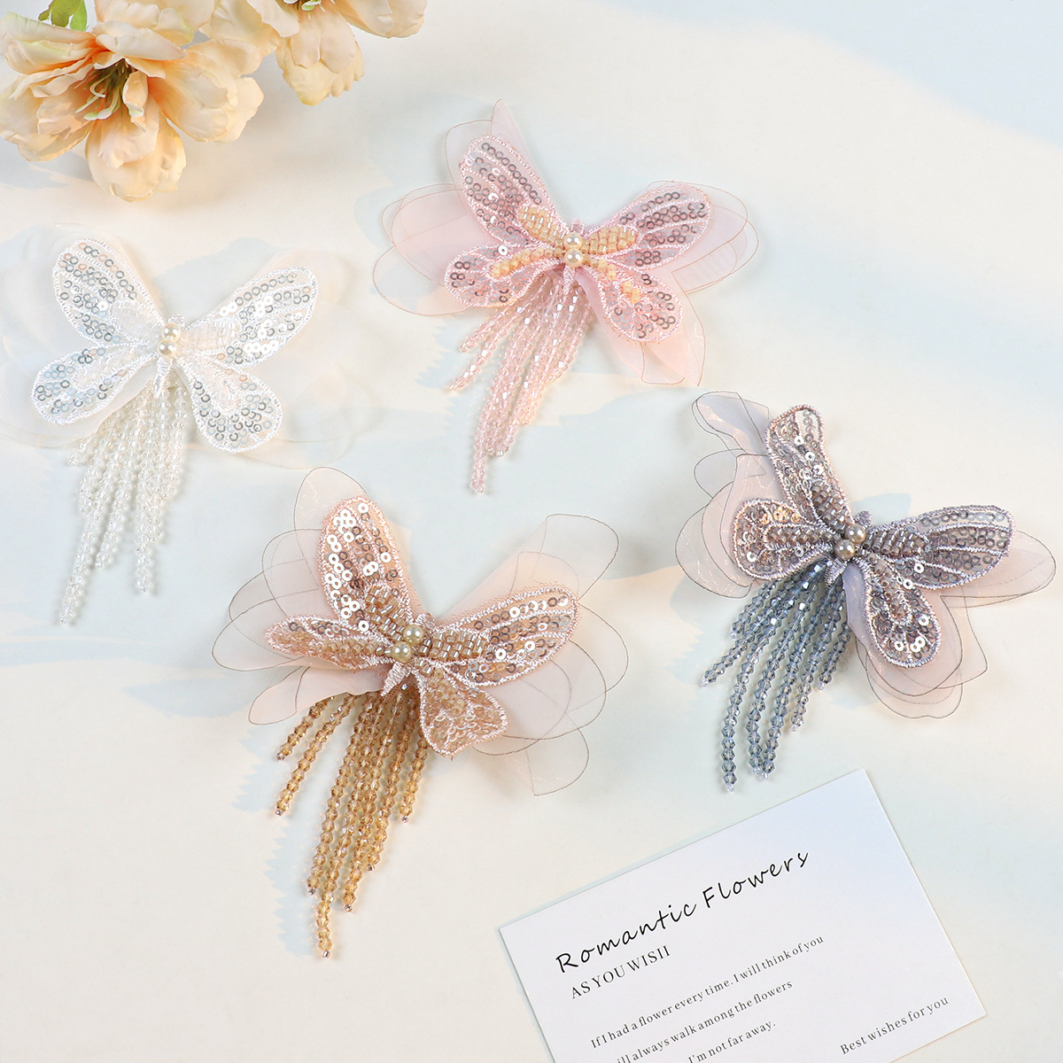 韩式水晶流苏蝴蝶纱花蕾丝花片布贴diy帽子包包服装辅料头饰花朵