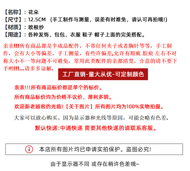 超仙立体欧根紗花diy服飾部品絹花頭飾り部品服装補助材料卸売り工場直