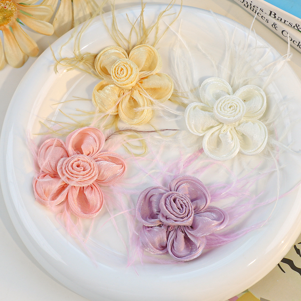 新款春夏糖果色五瓣花羽毛配件diy手作头饰包包服装辅料材料批发