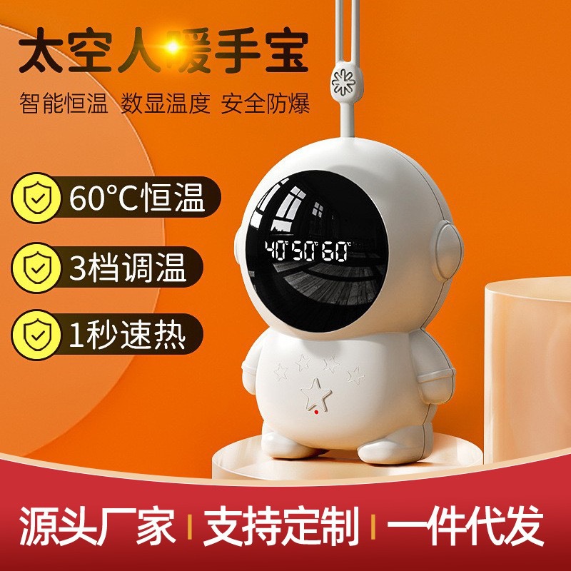 爆款跨境太空人防爆暖手宝充电式USB迷你便携式学生暖手礼物数显