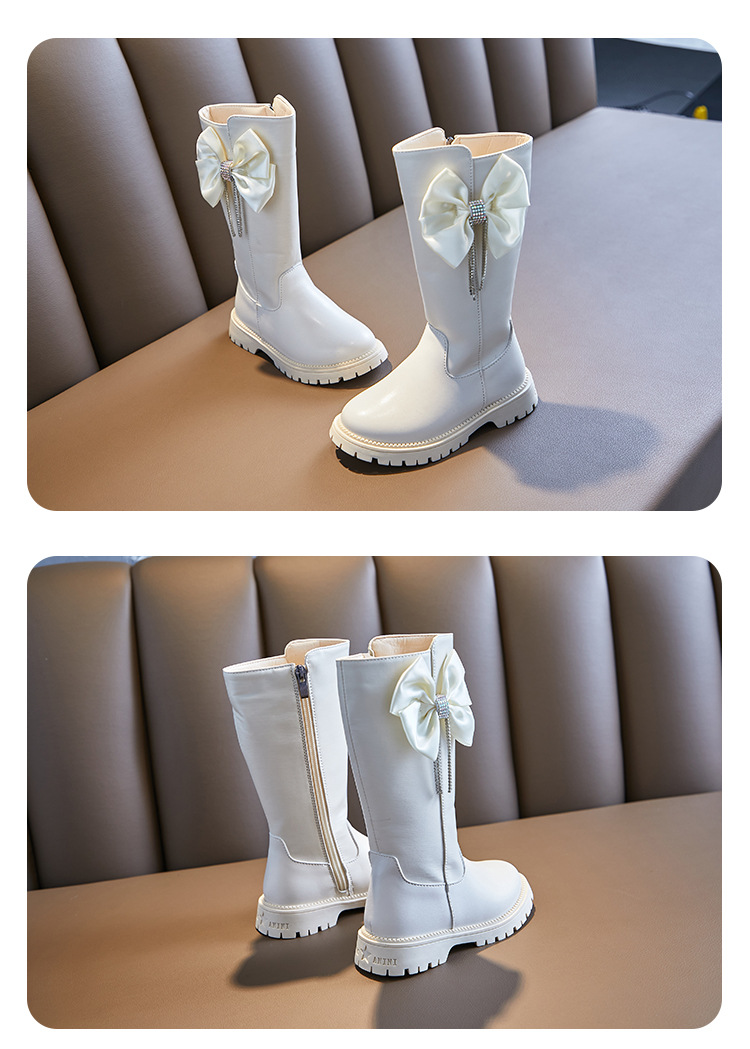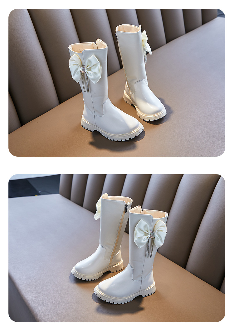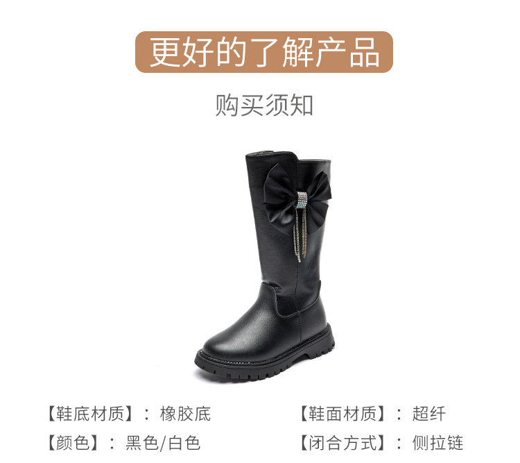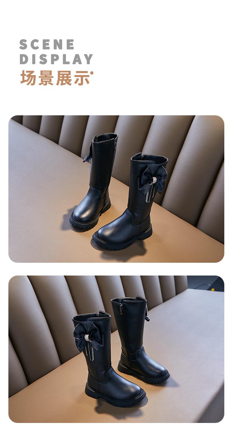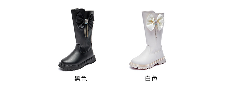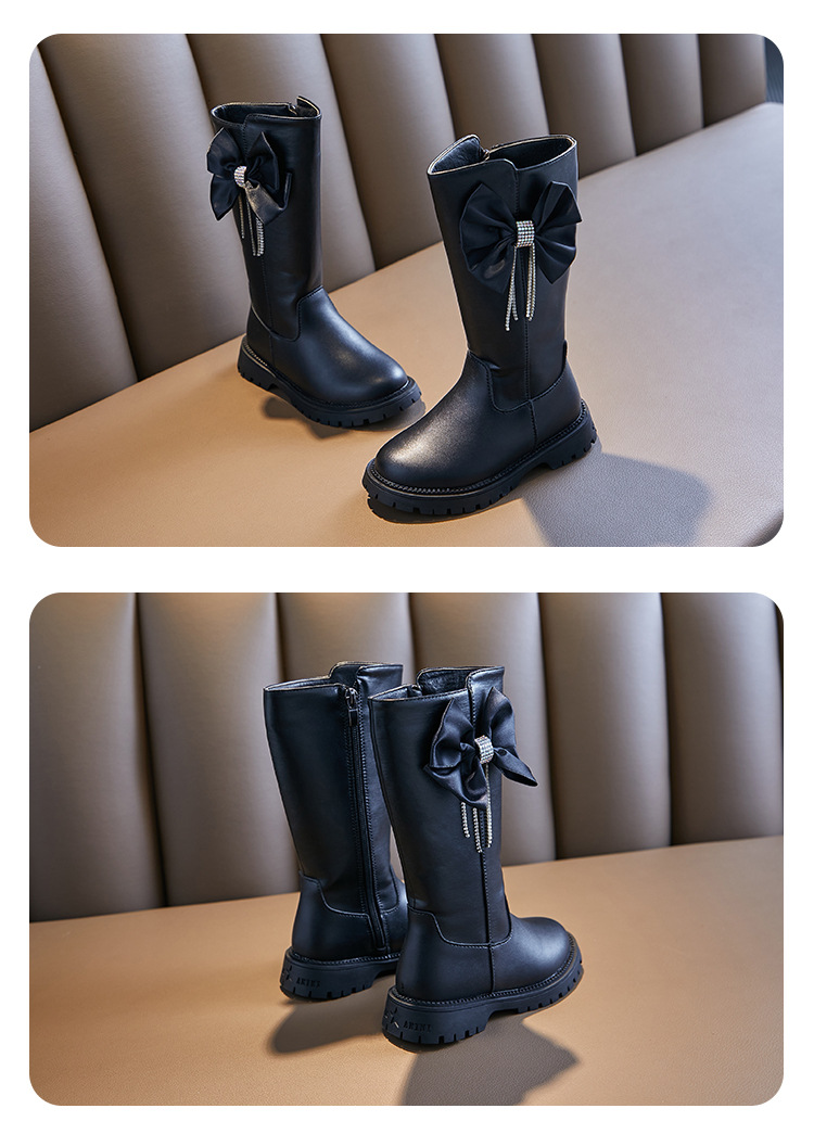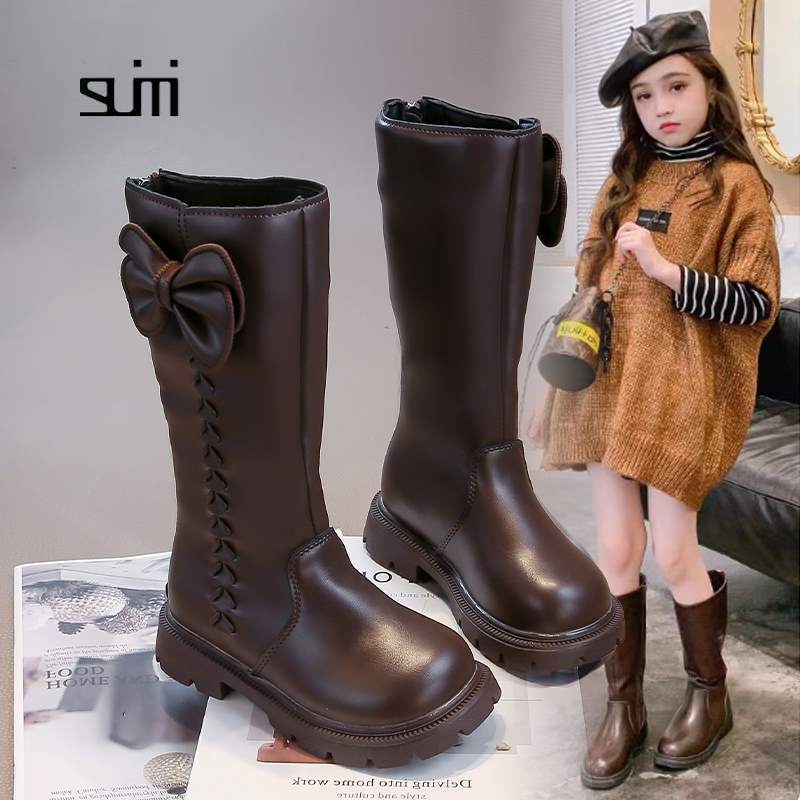 女童长靴秋冬新款韩版时尚长筒靴中大童洋气蝴蝶结走秀长筒靴加绒