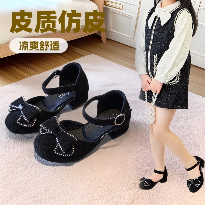 女の子の革靴プリンセスシューズ夏の韓国ファッション小さなハイヒールシングルシューズ少女ハーフパックサンダルパフォーマンスシューズ