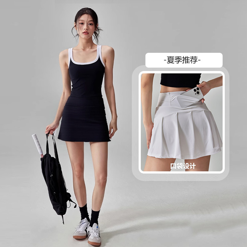健身瑜伽运动短裙大码胖mm防走光速干网球裙背心套装普拉提训练服