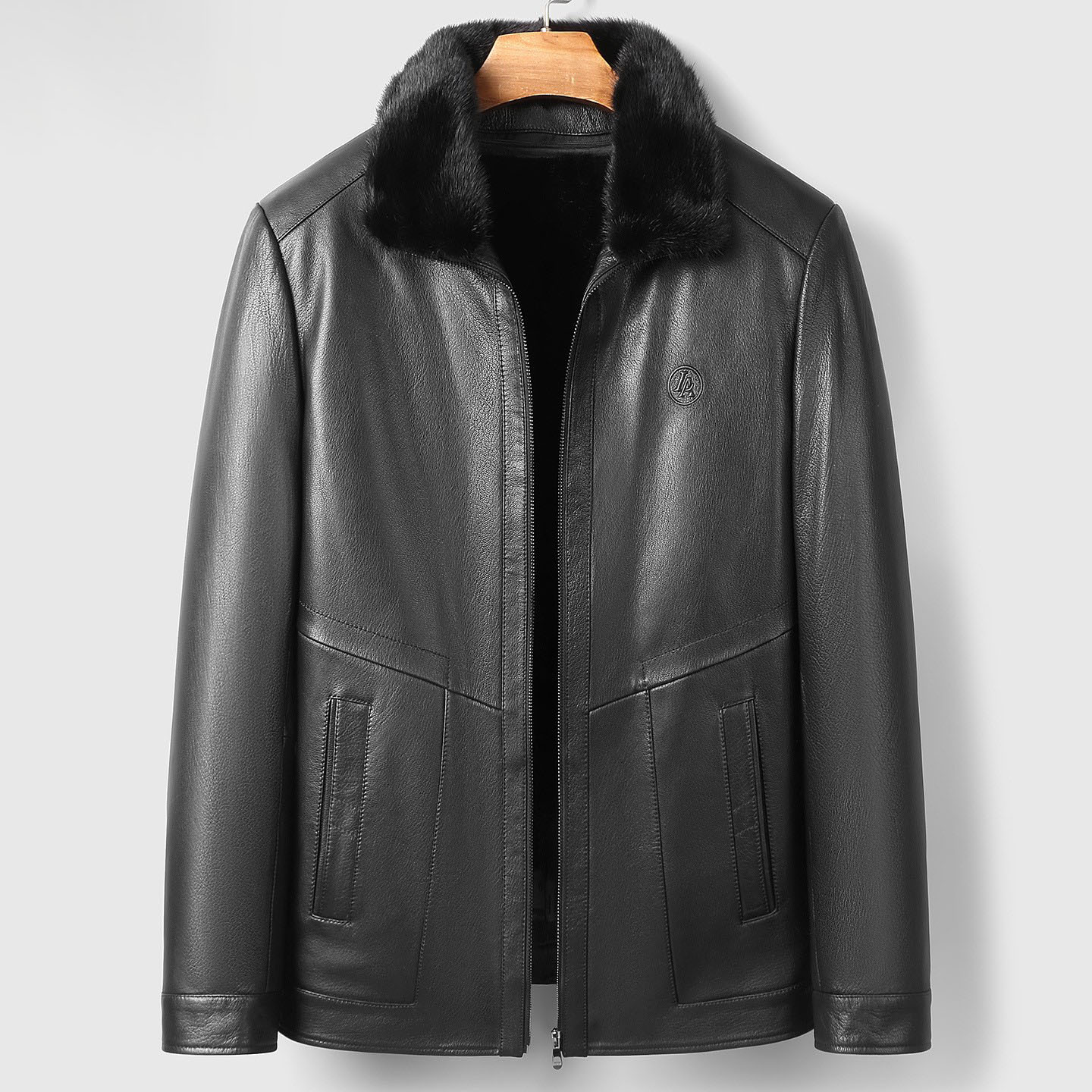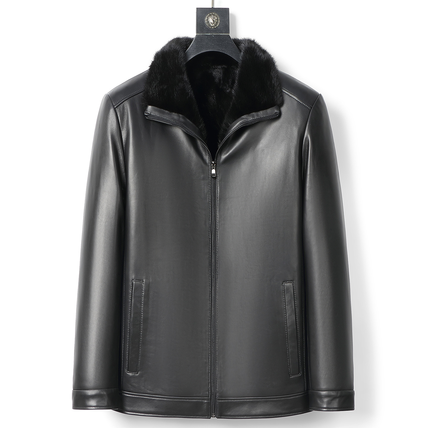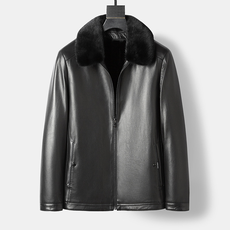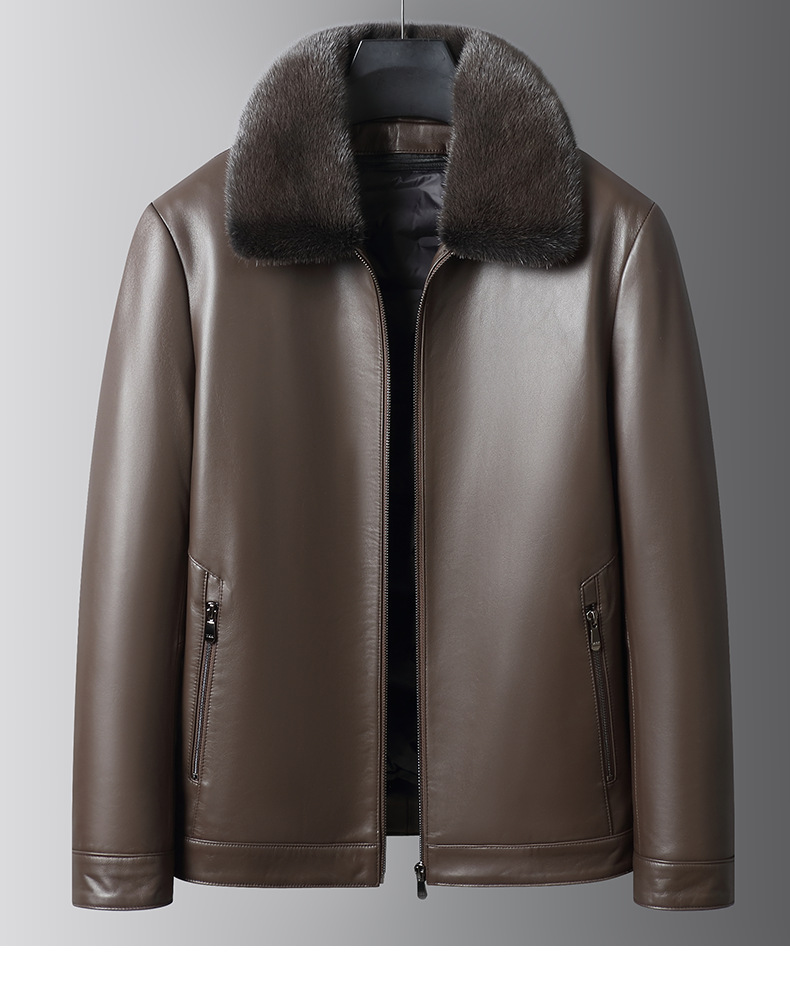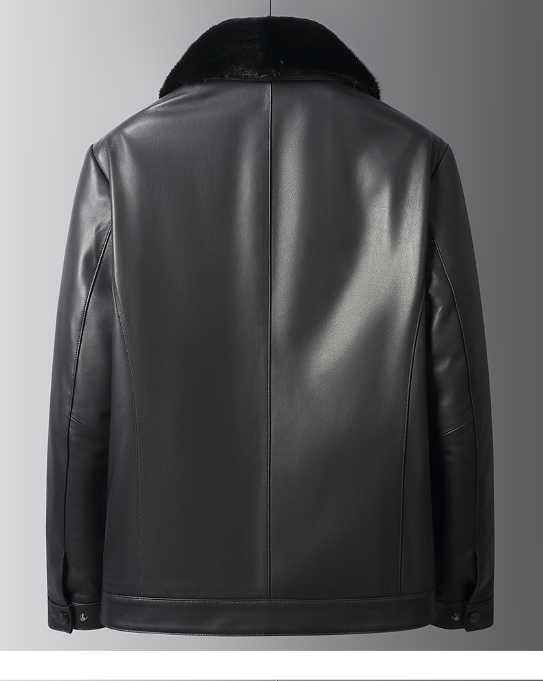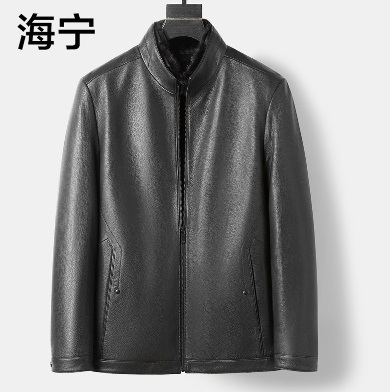 海宁25冬季新款山羊皮真皮皮衣男水貂内胆夹克爸爸皮夹克保暖外套