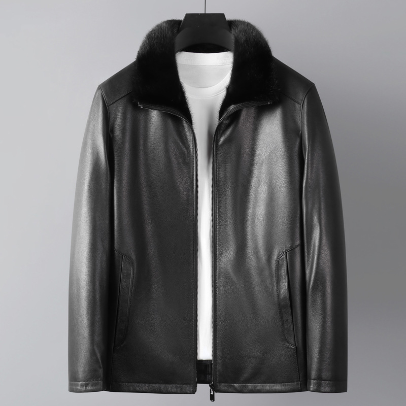 大货冬季新款男士貂皮大衣山羊皮外套水貂内胆中年爸爸装加厚保暖