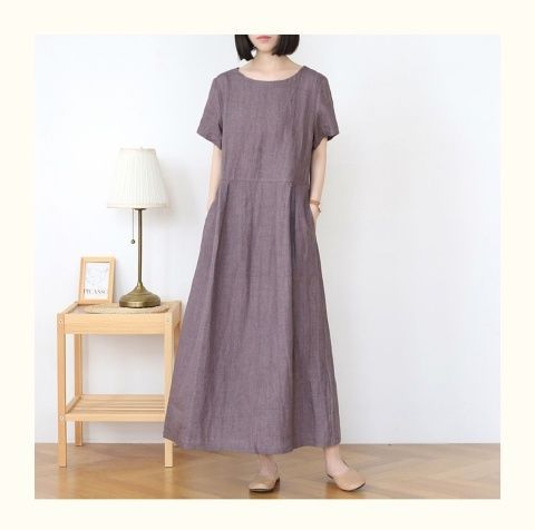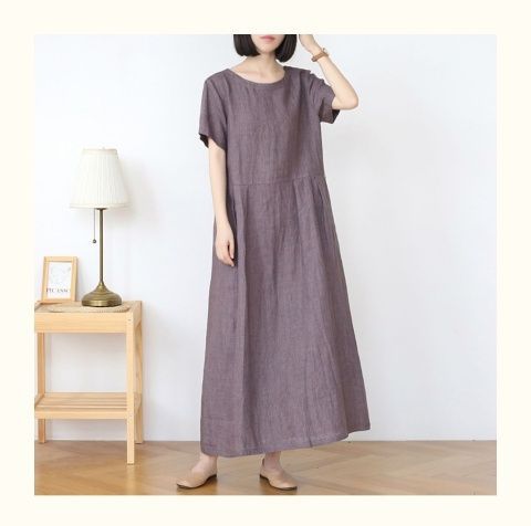 宽松口袋设计棉麻连衣裙女装2025夏季新款中长款显瘦大码圆领短袖