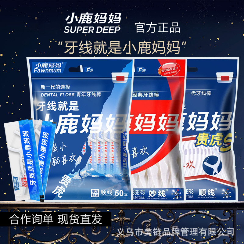 牙线小鹿妈妈牙线家用食品级牙线独立包装双线家庭装青年款袋装