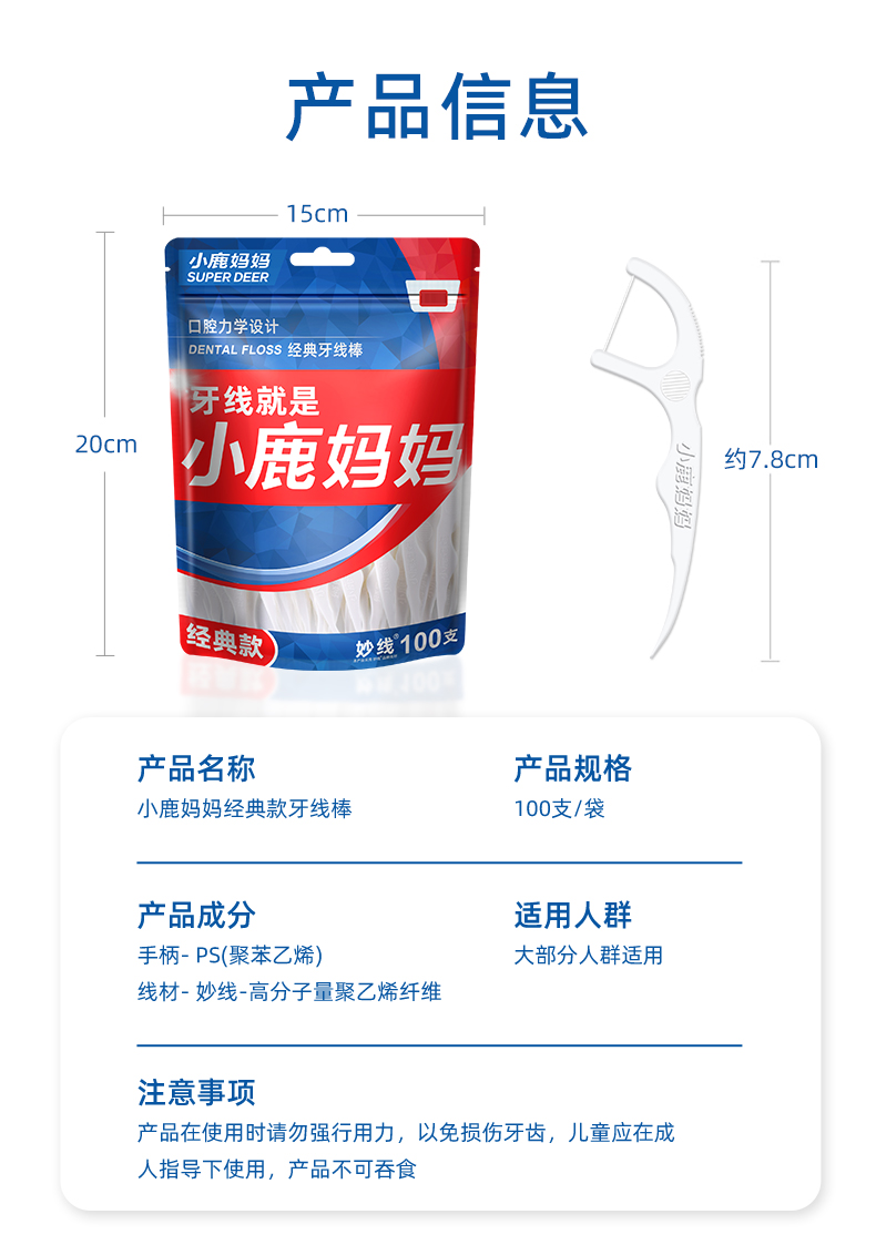牙线牙线棒产品 小鹿妈妈经典顺滑牙线棒