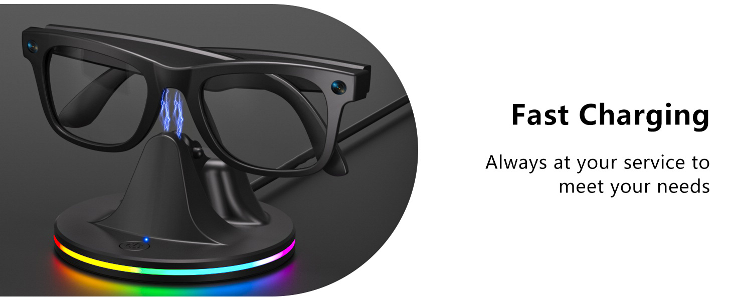 包装清单 智能眼镜 充电支架, 配件 配一个USB TO C 的1M数据线 +一个包装盒