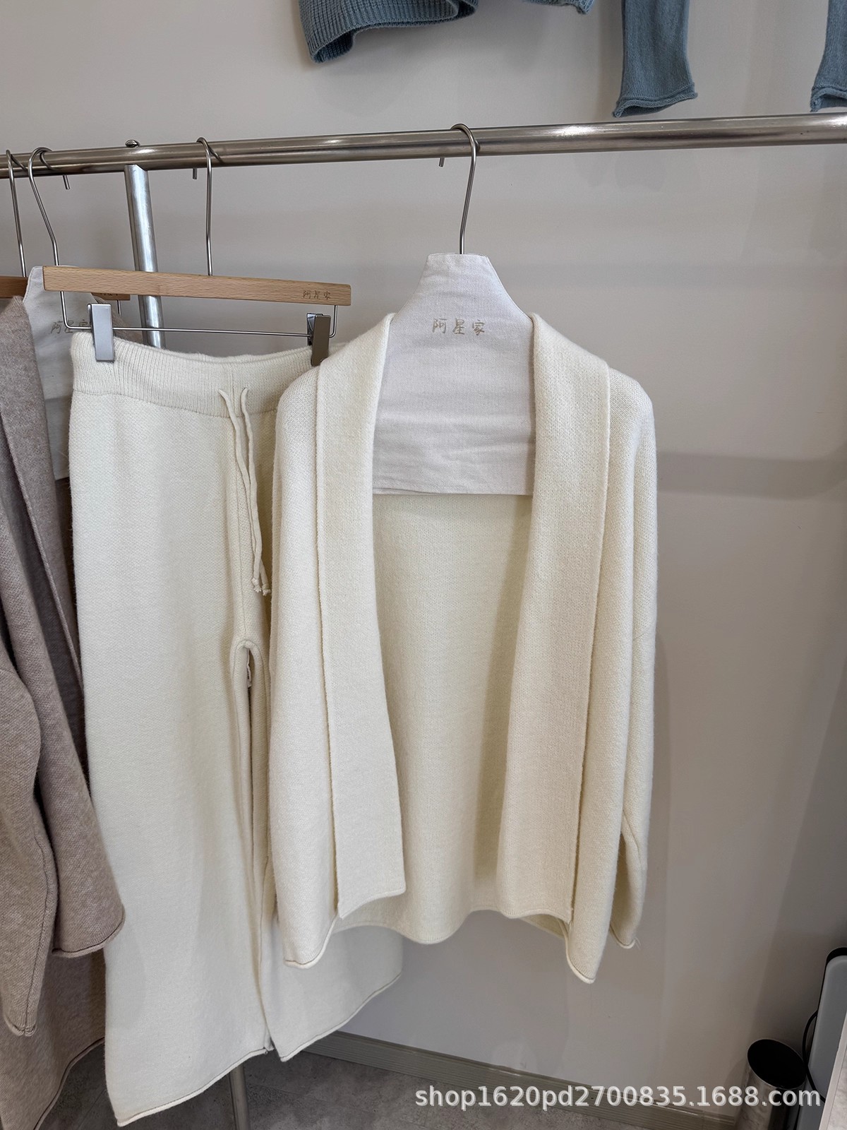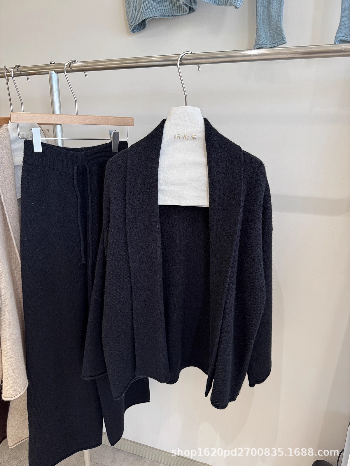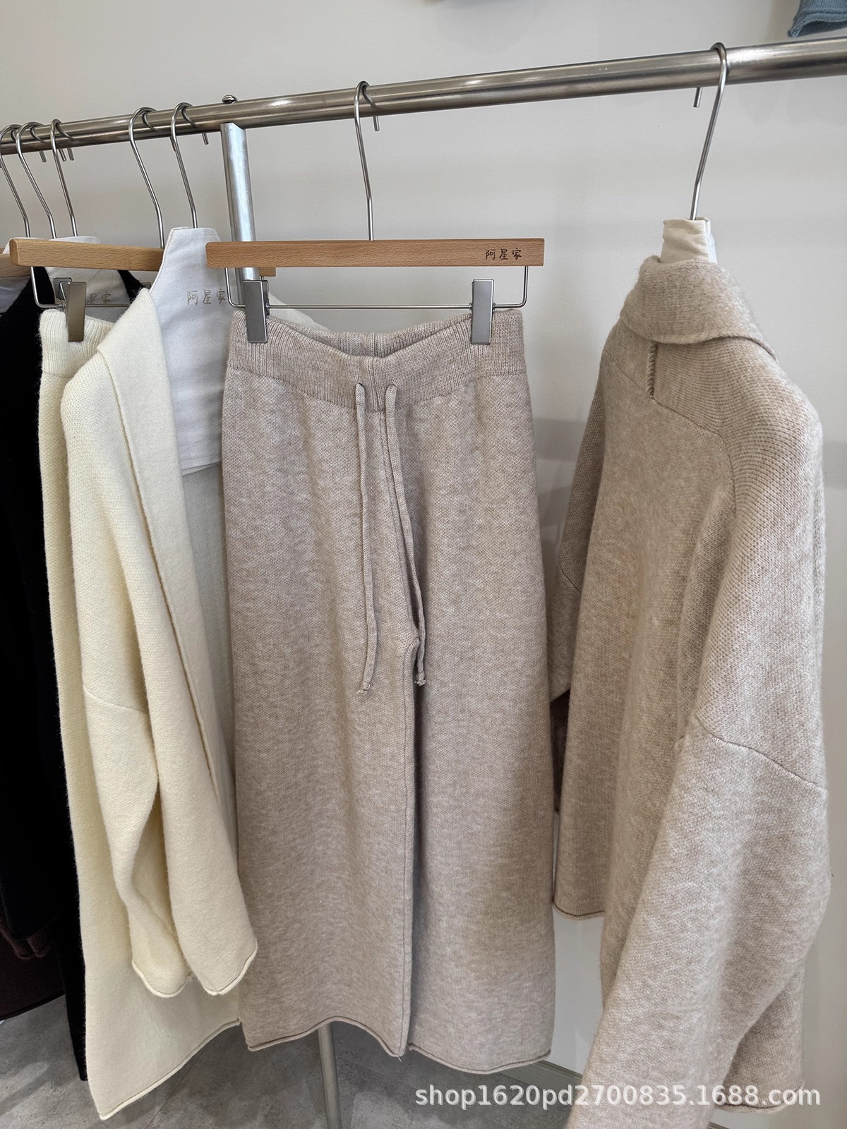 韩系慵懒风针织开衫毛衣外套女+高腰系带卷边休闲阔腿裤两件套装
