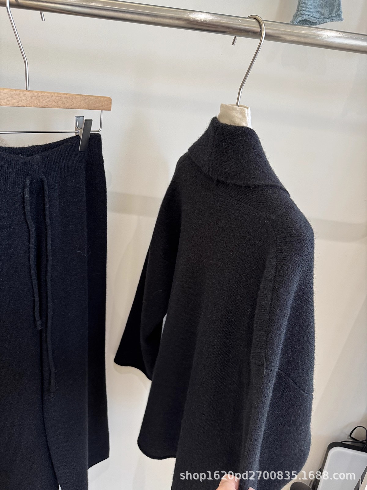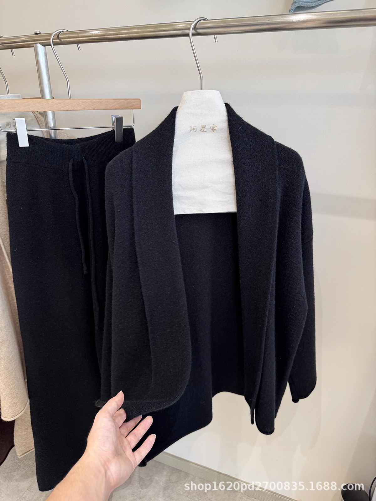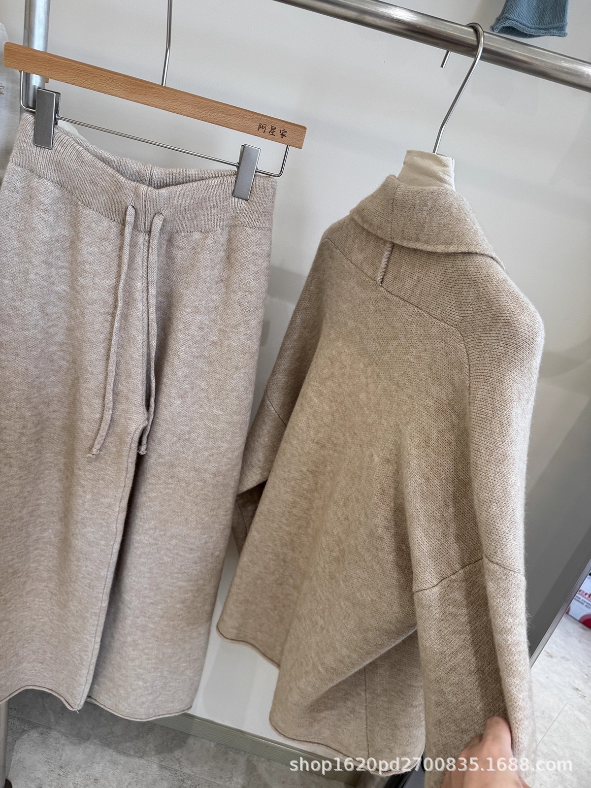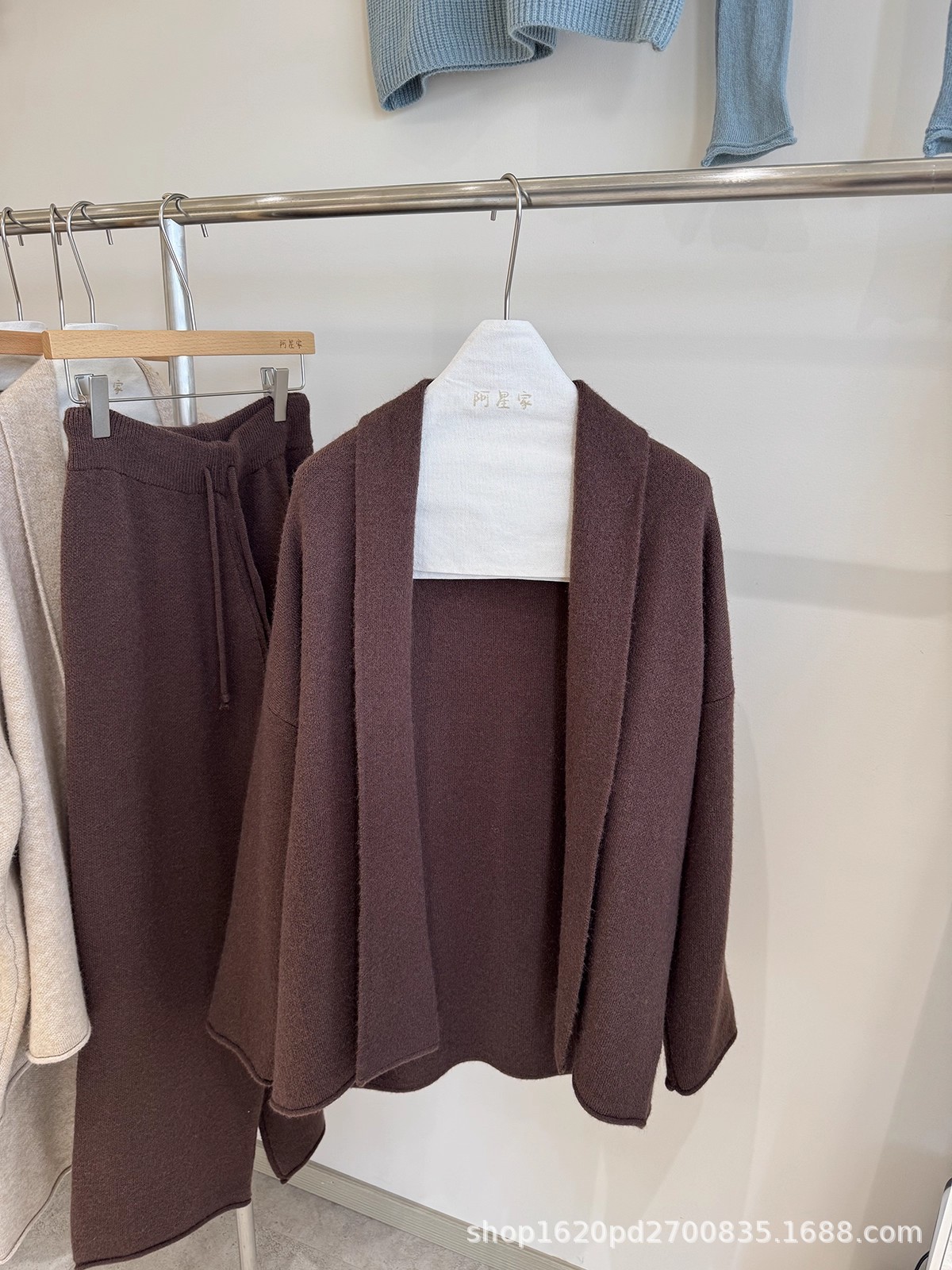 韩系慵懒风针织开衫毛衣外套女+高腰系带卷边休闲阔腿裤两件套装
