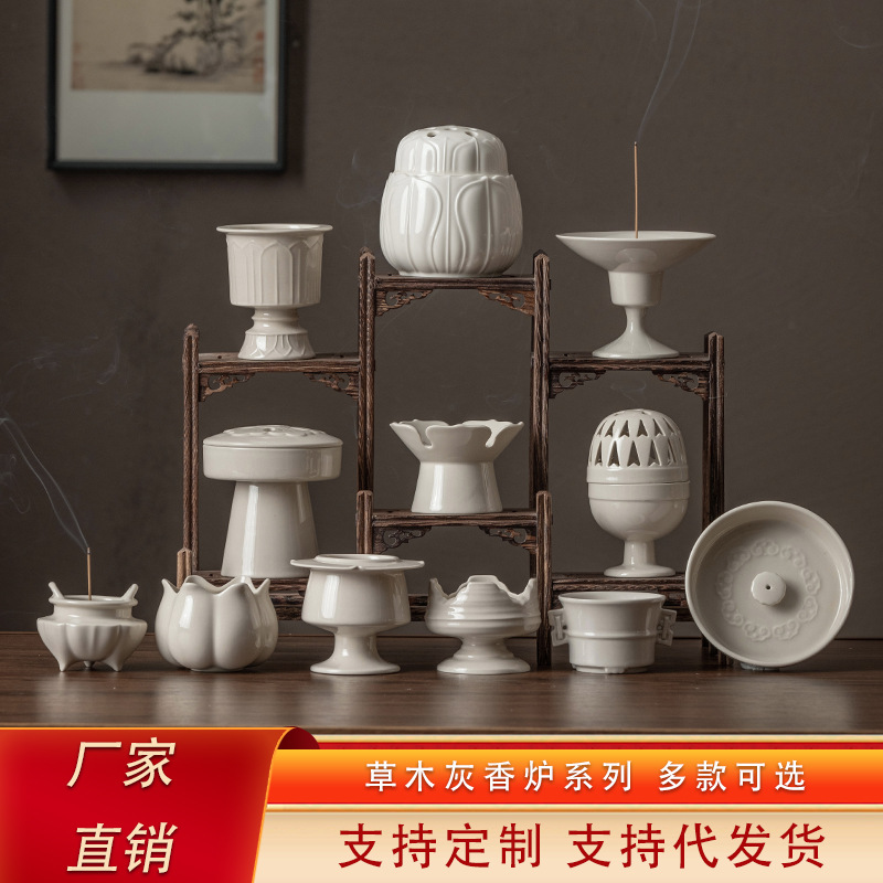 草木灰陶磁器秋菊香薫炉置物家庭用室内香托香器夏蓮カップベース香挿香座