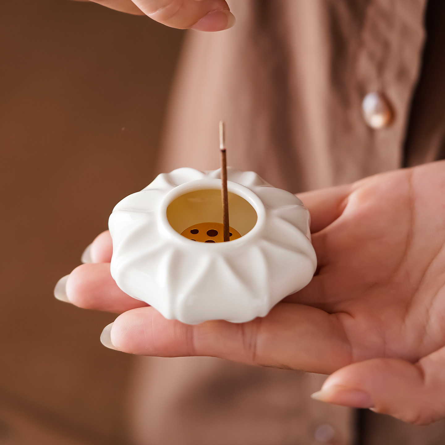 简约立式线香插香座家用室内金属九孔香道香器陶瓷花瓣香薰炉摆件