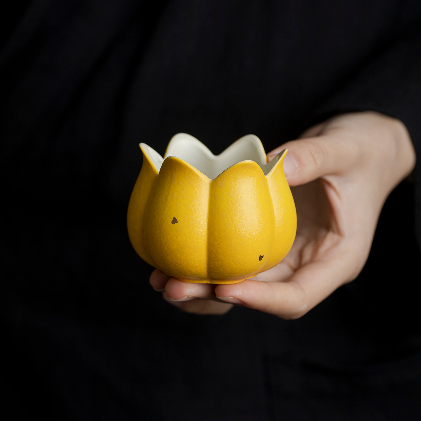 柠檬黄洒金陶瓷莲瓣香插花口线香炉家用创意中式香道配件茶道摆件